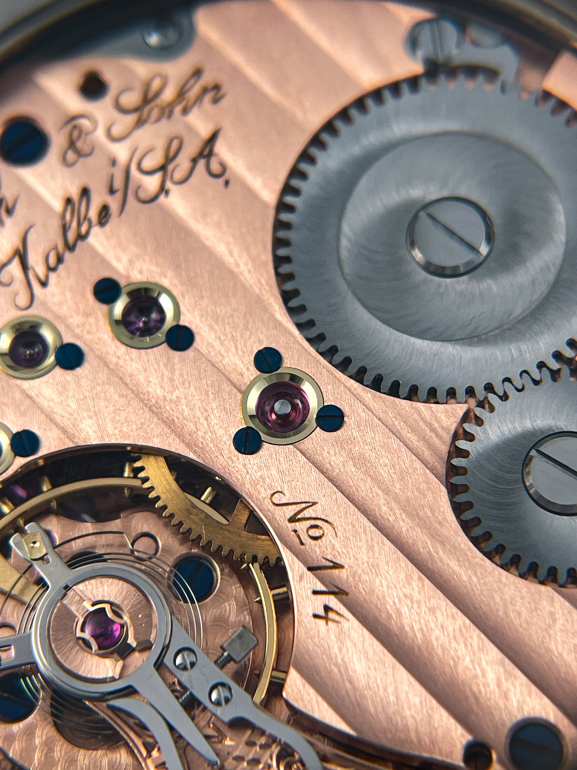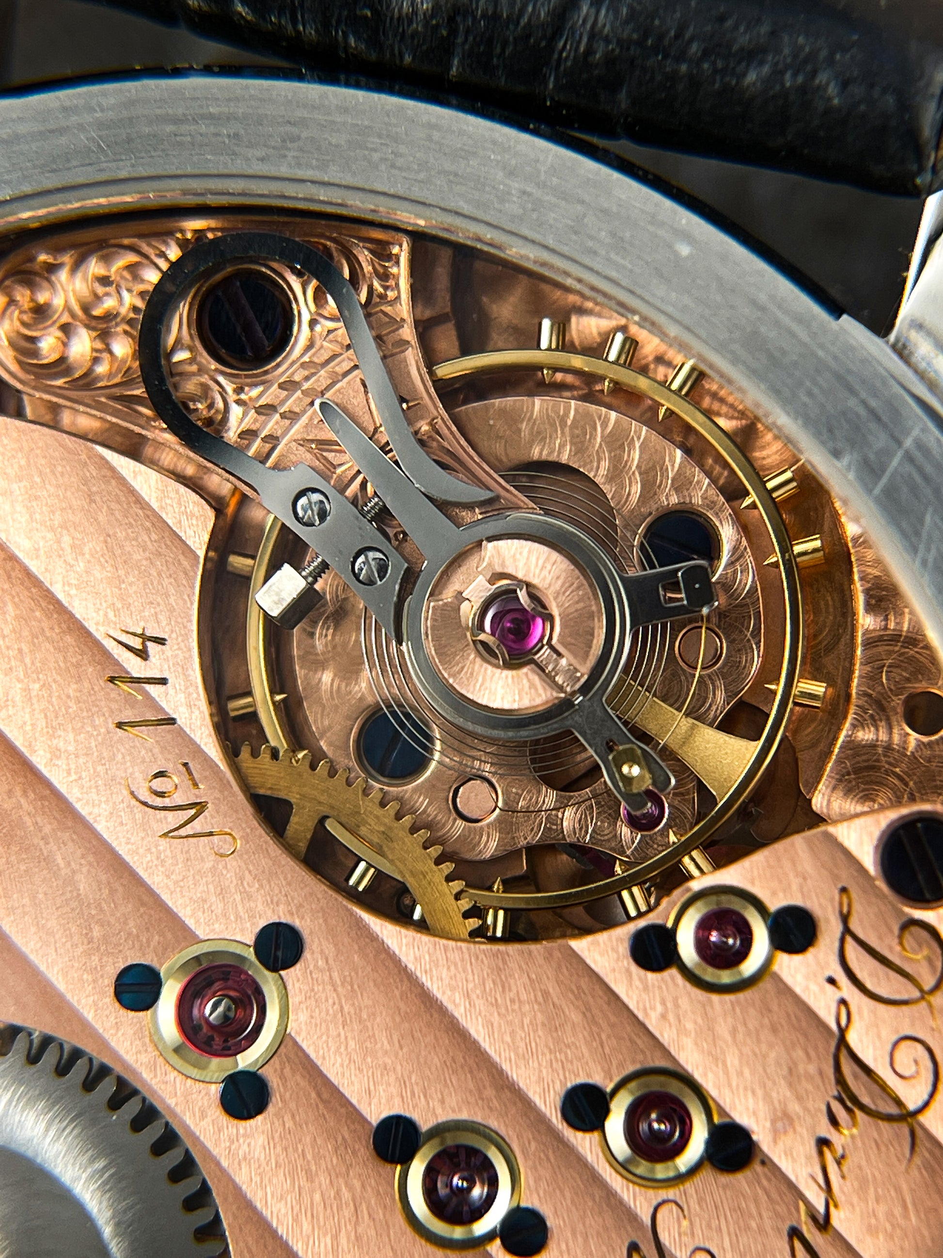 This watch, the 99.4 features a familiar caliber which has been heavily modified in terms of aesthetic beauty and complication. Every detail of the watch from the dial with applied indices to the very beautifully formed and constructed hands exude quality. The pointer date at the 3 o'clock subdial is easily set using a depressor on the case at the 2 o'clock position. The case measures 42mm x 12.3 w/ crystal x 52mm lug-to-lug.