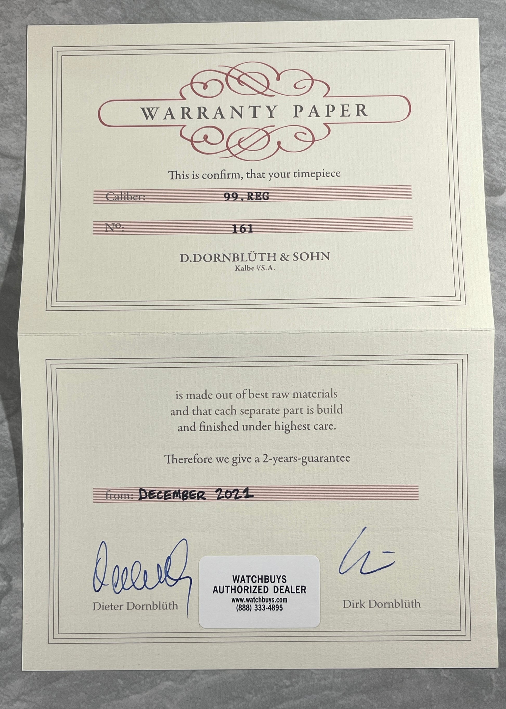 Dornblüth & Sohn 99.REG Regulator - Serial #161 (Pre-Owned)