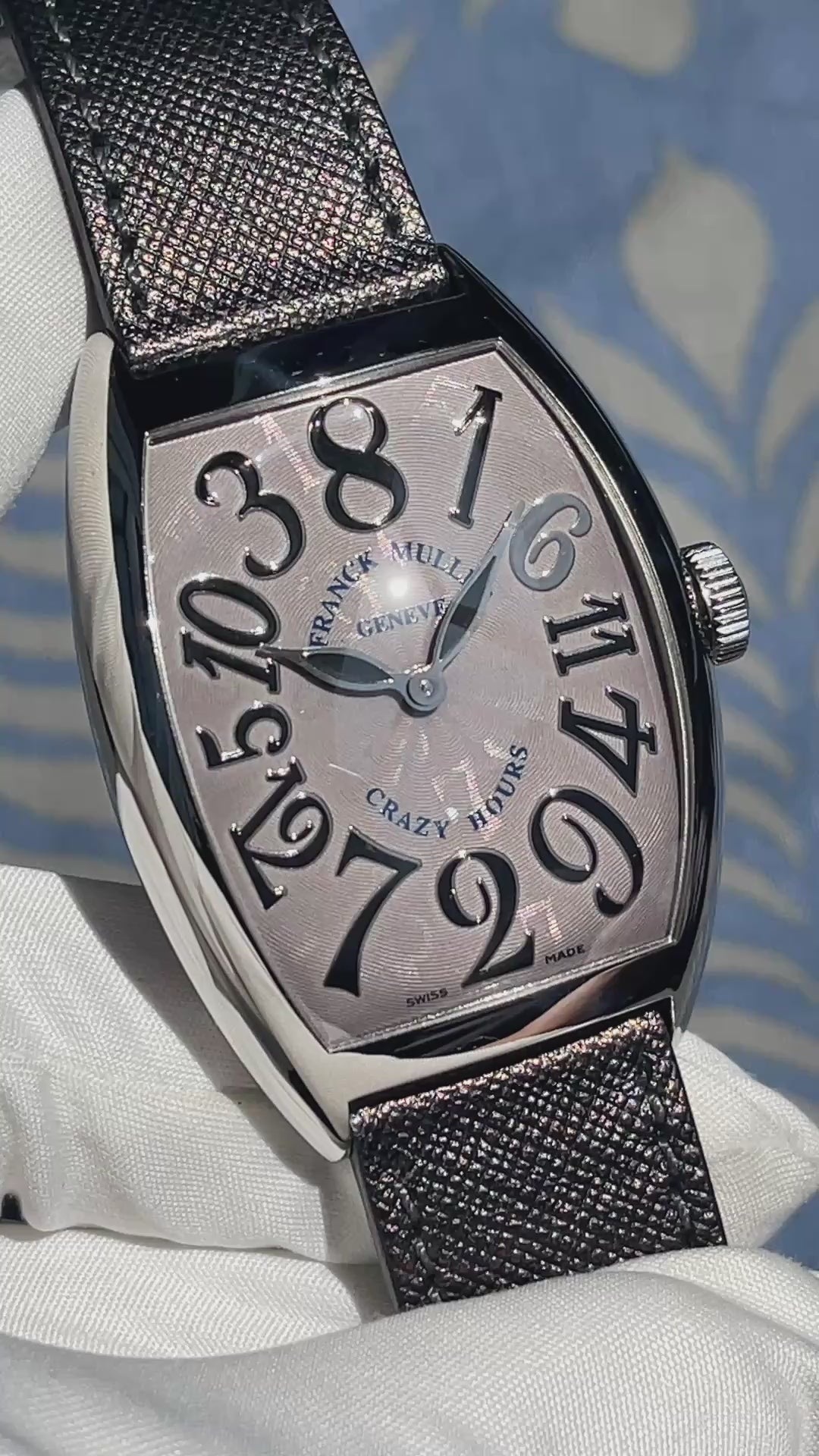 Crazy times for call for a crazy cool timepiece, so here we are with a Special Edition reference of the Frank Muller Crazy Hours for the CronotempVs Collectors Club. Housed in Muller's Cintrée Curvex case, a soleil patterned dial features the hours arranged in a disorderly fashion at first glance. Time is displayed by way of an hour hand which idles for an hour at a time on the respective index, only to jump 5 positions to the next hour once the minute hand arrives at the very top of the dial. The dial is further animated with additional silvery numerals that appear and vanish depending on the angle of light. These dials are said to have been coated with 20 layers of translucent lacquer for their shimmering effect.