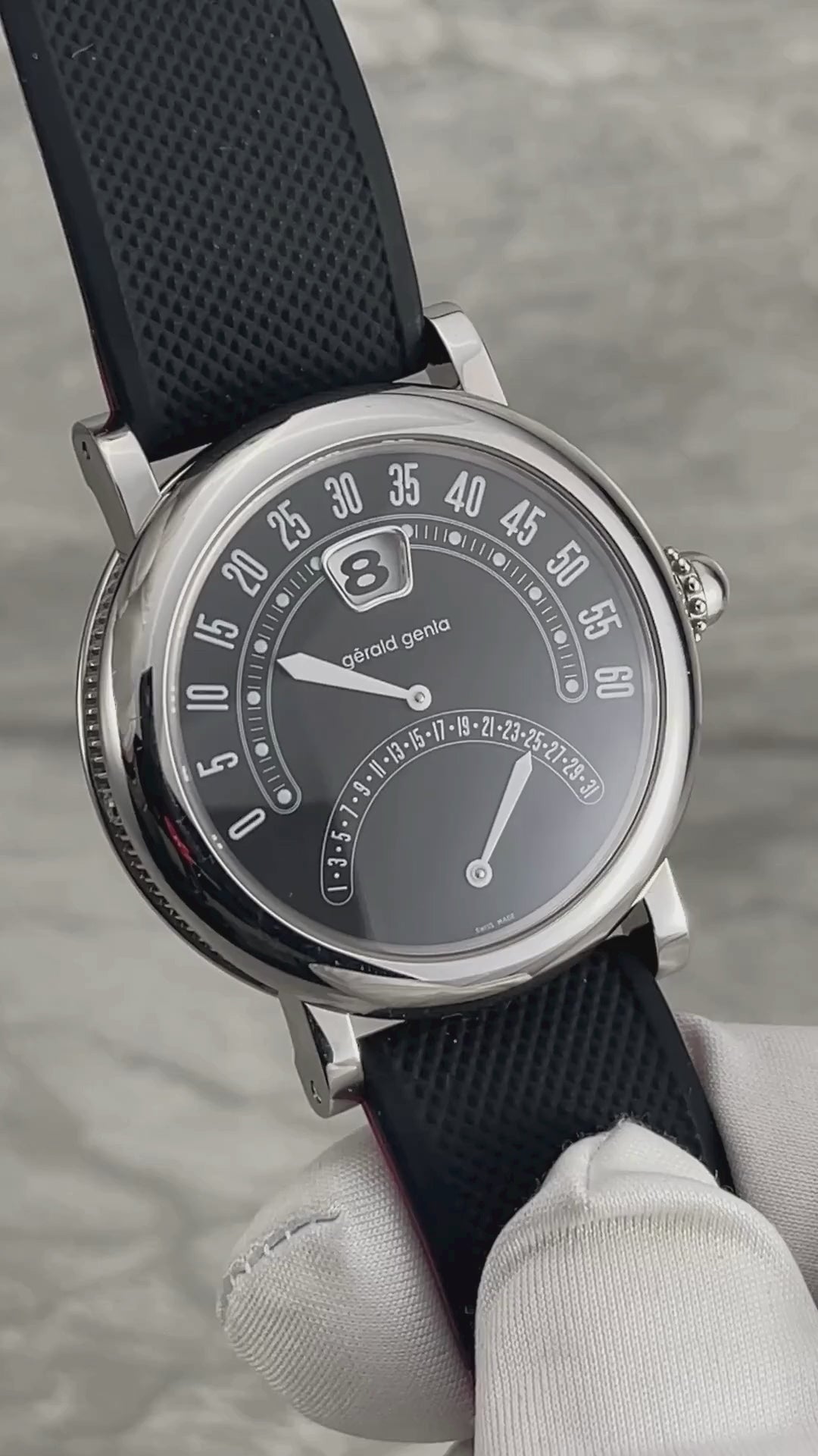 A fun watch from a true legend of horology, this BiRetro from Gerald Genta features jumping hours, retrograde minutes and a retrograde date in a modestly sized case.