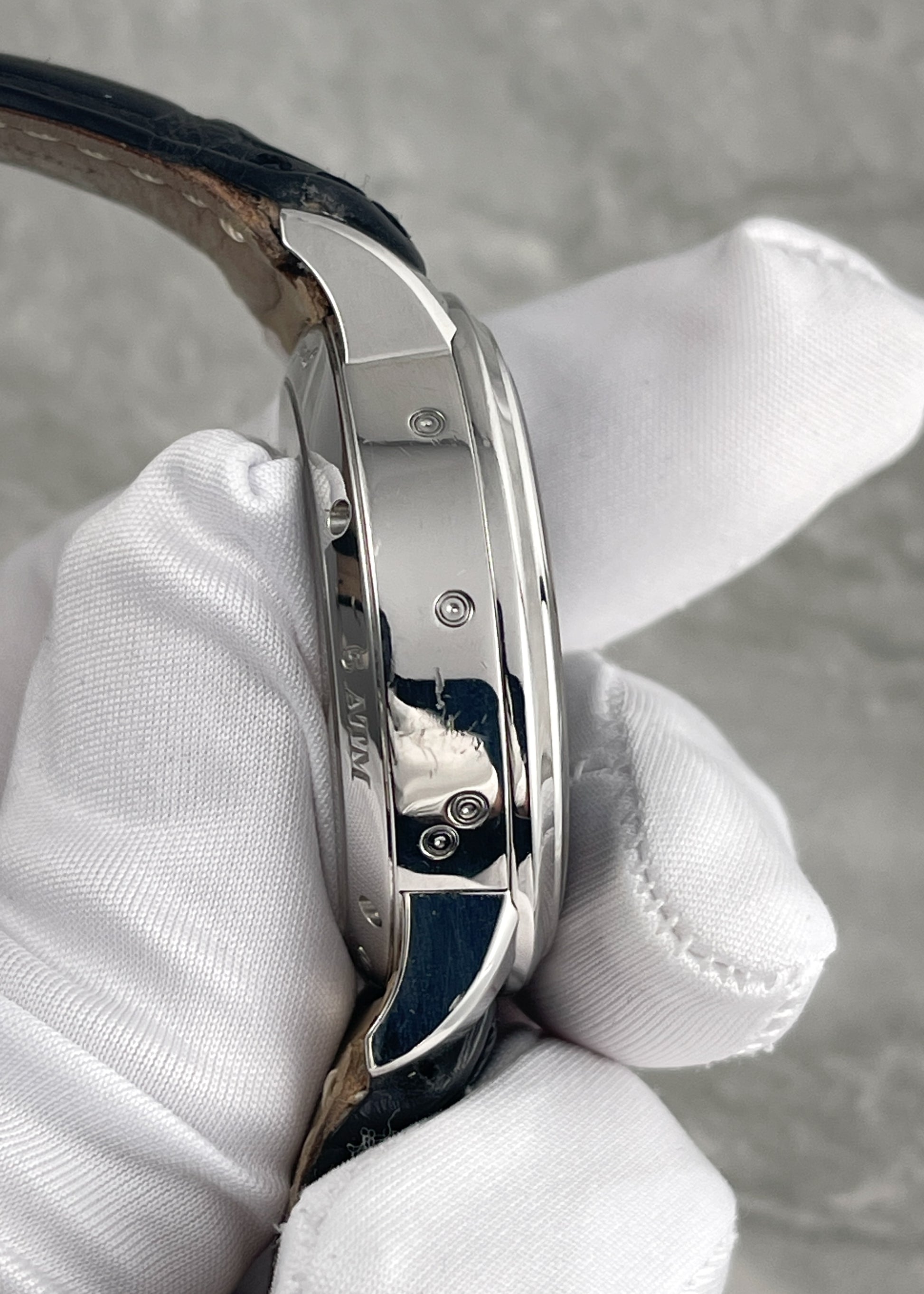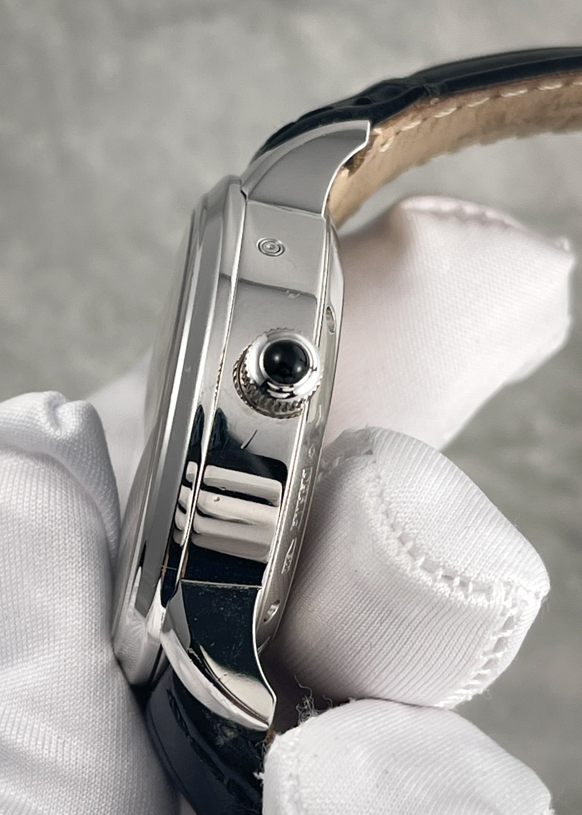 The .950 Platinum Case measures 40mm x 12.5mm x 47mm lug-to-lug. Furnished with OEM alligator strap and platinum pin buckle. Complete with Original Box & Papers.