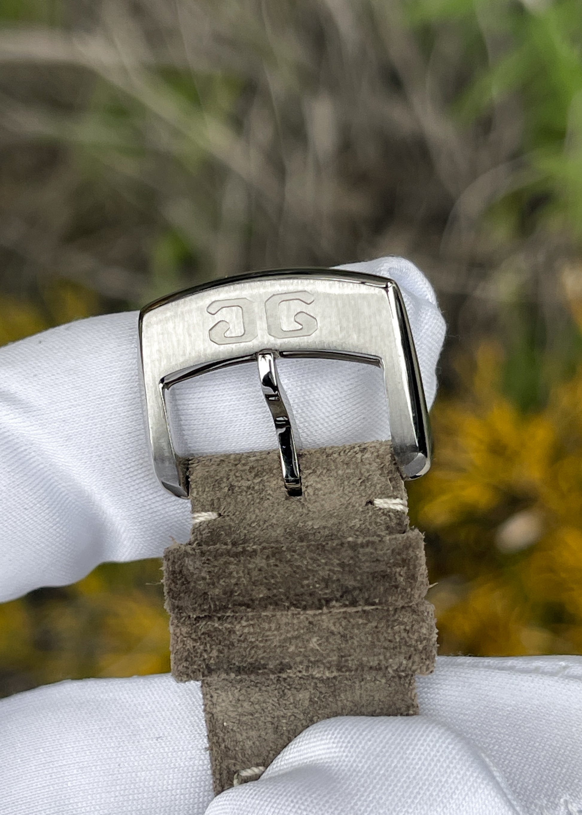 The reverse side reveals GO's in-house automatic winding Caliber 39-34 running at 4 Hz. Residing underneath the rotor with a 21 Karat gold weight is the three-quarter plate which is beautifully finished with Côtes de Genève. One of my favorite aspects is the characteristic Swan Neck regulator for fine timing adjustment.