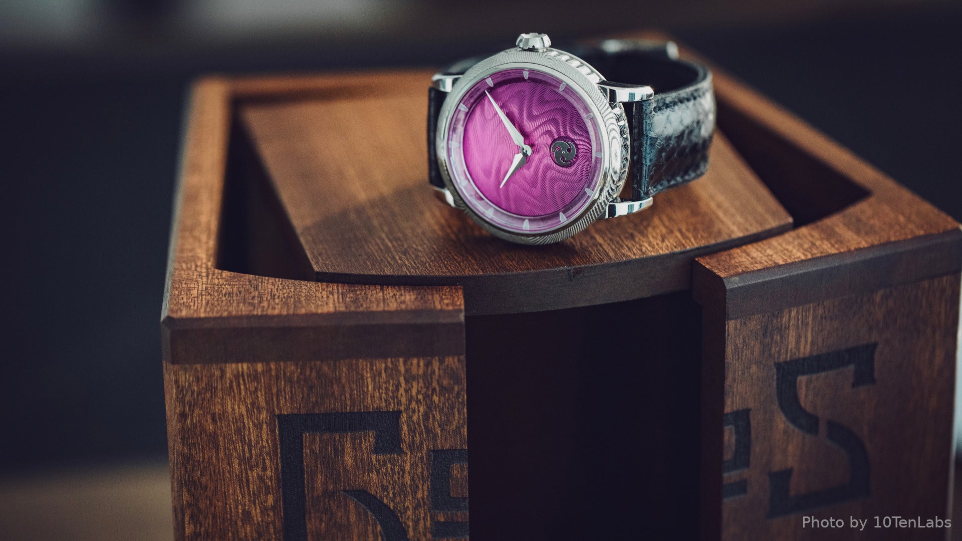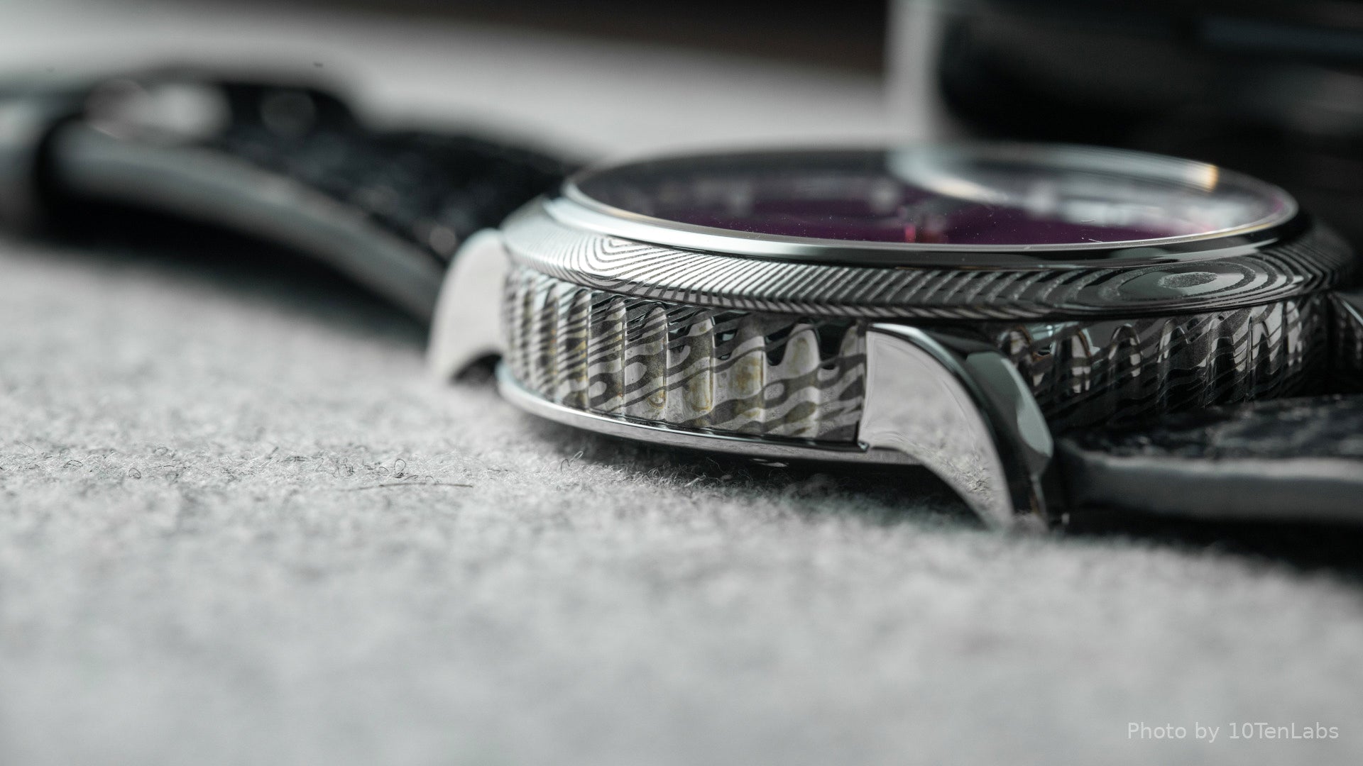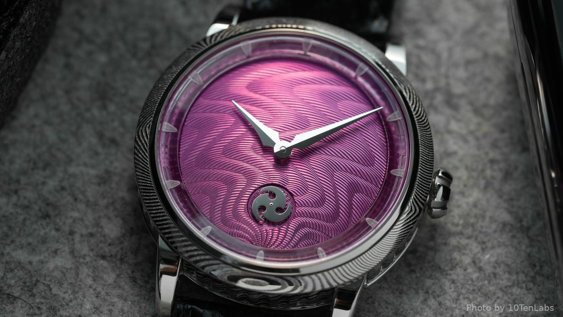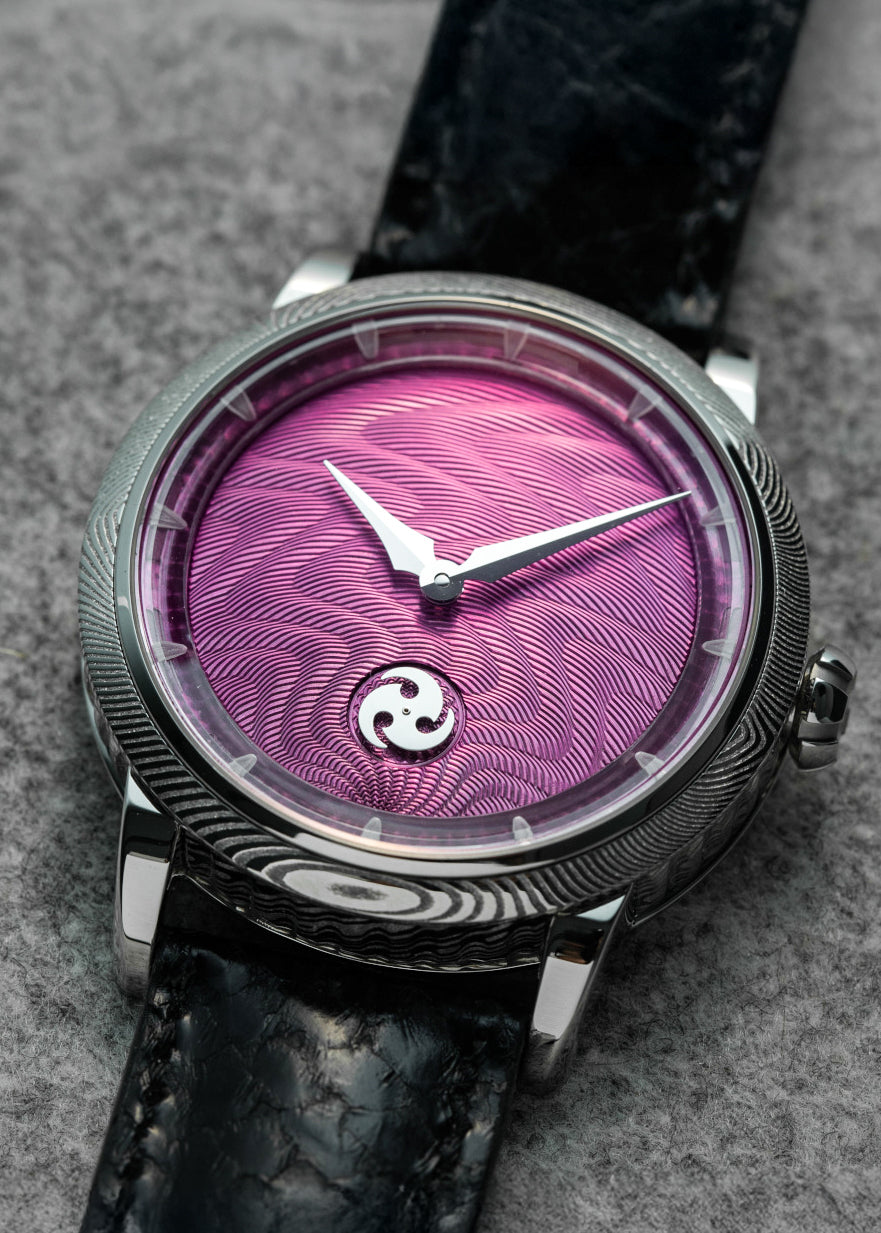 GoS Norrsken w/ Damascus Case & Bezel, Fuschia Guilloché dial by Jochen Benzinger (Pre-Order) (Copy)