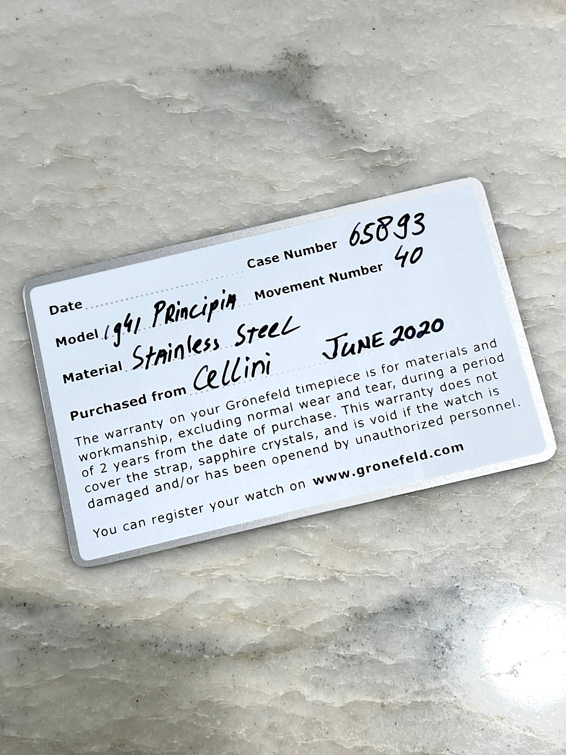 Grönefeld 1941 Principia Salmon Dial - Serial #40 (Pre-Owned)