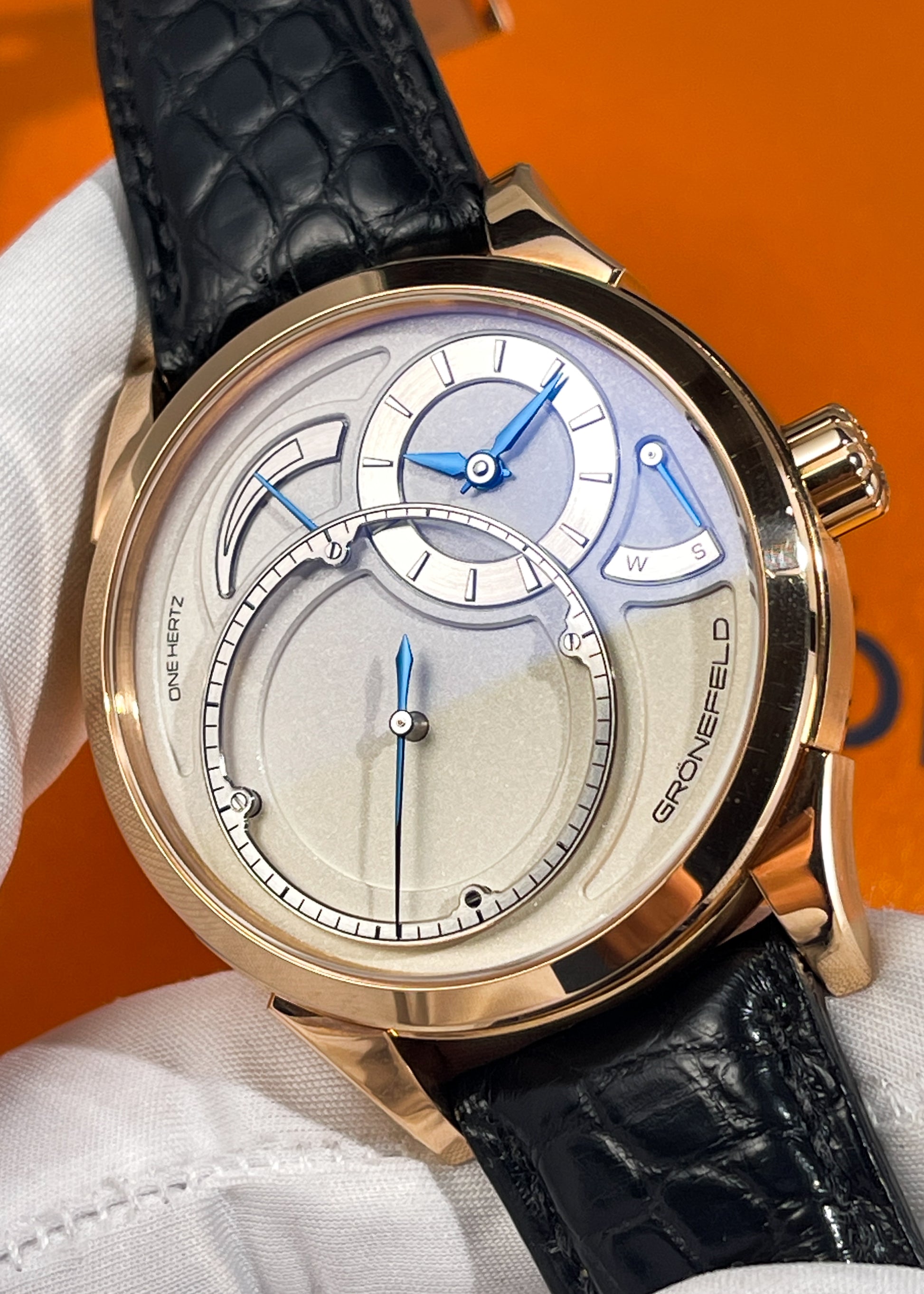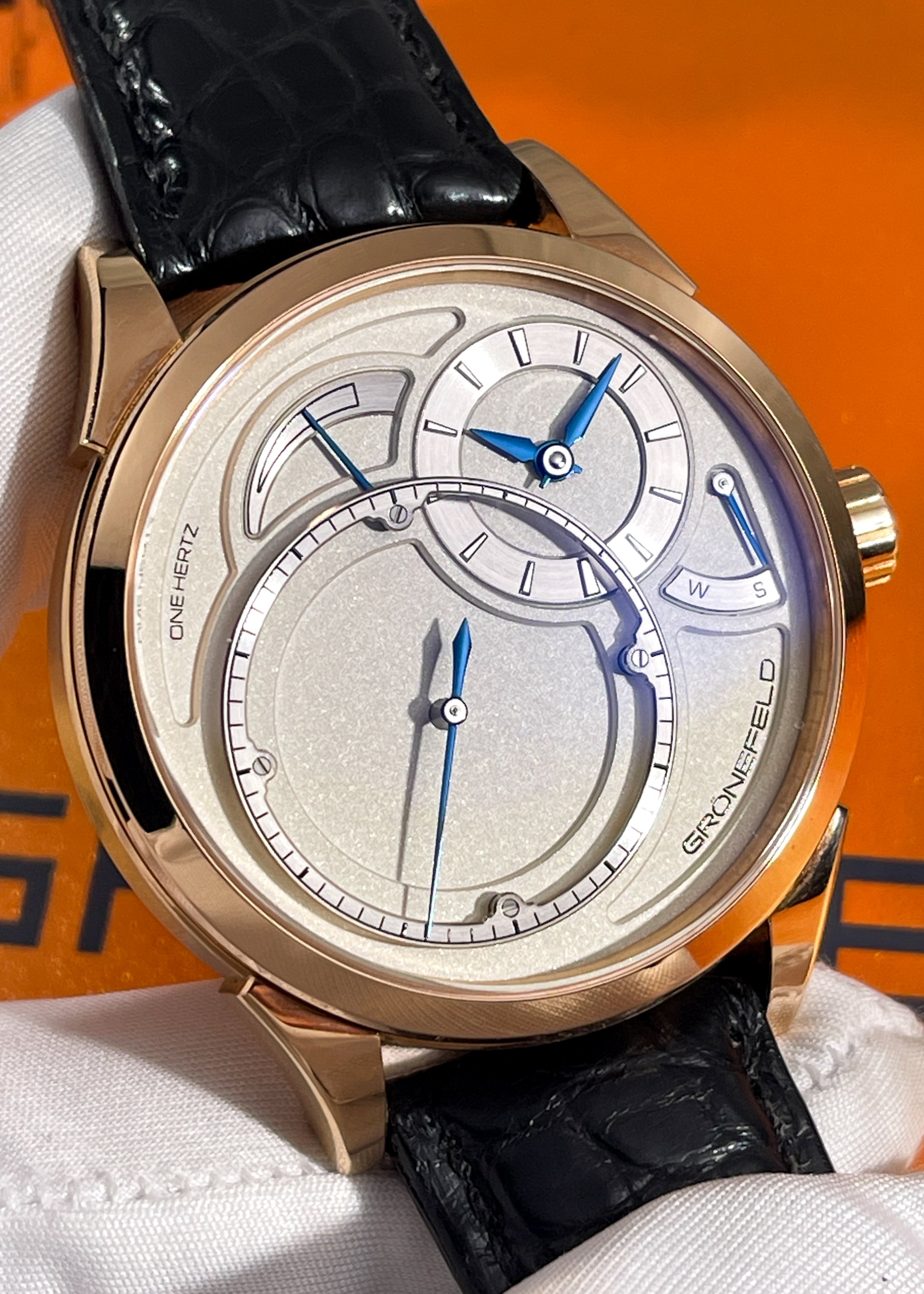 Horology By The Sea is thrilled to present this Grönefeld One Hertz Red Gold, a masterpiece of horological artistry crafted by the renowned Horological Brothers, Bart and Tim Grönefeld.
