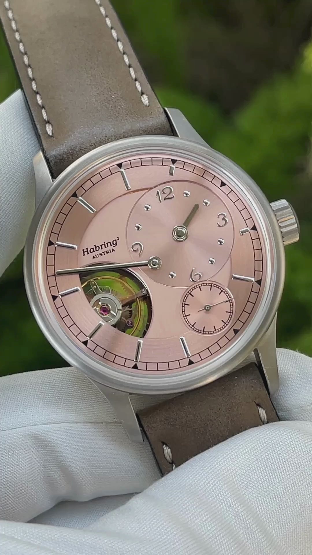 Presenting a gorgeous one-off creation from Maria & Richard Habring which was commissioned by a client in 2007. This watch features a Tourbillon escapement viewable dial side and movement side. The time is displayed in Regulator style, displaying centrally located minutes while the hours are contained in a large subdial and seconds below in a smaller subdial.