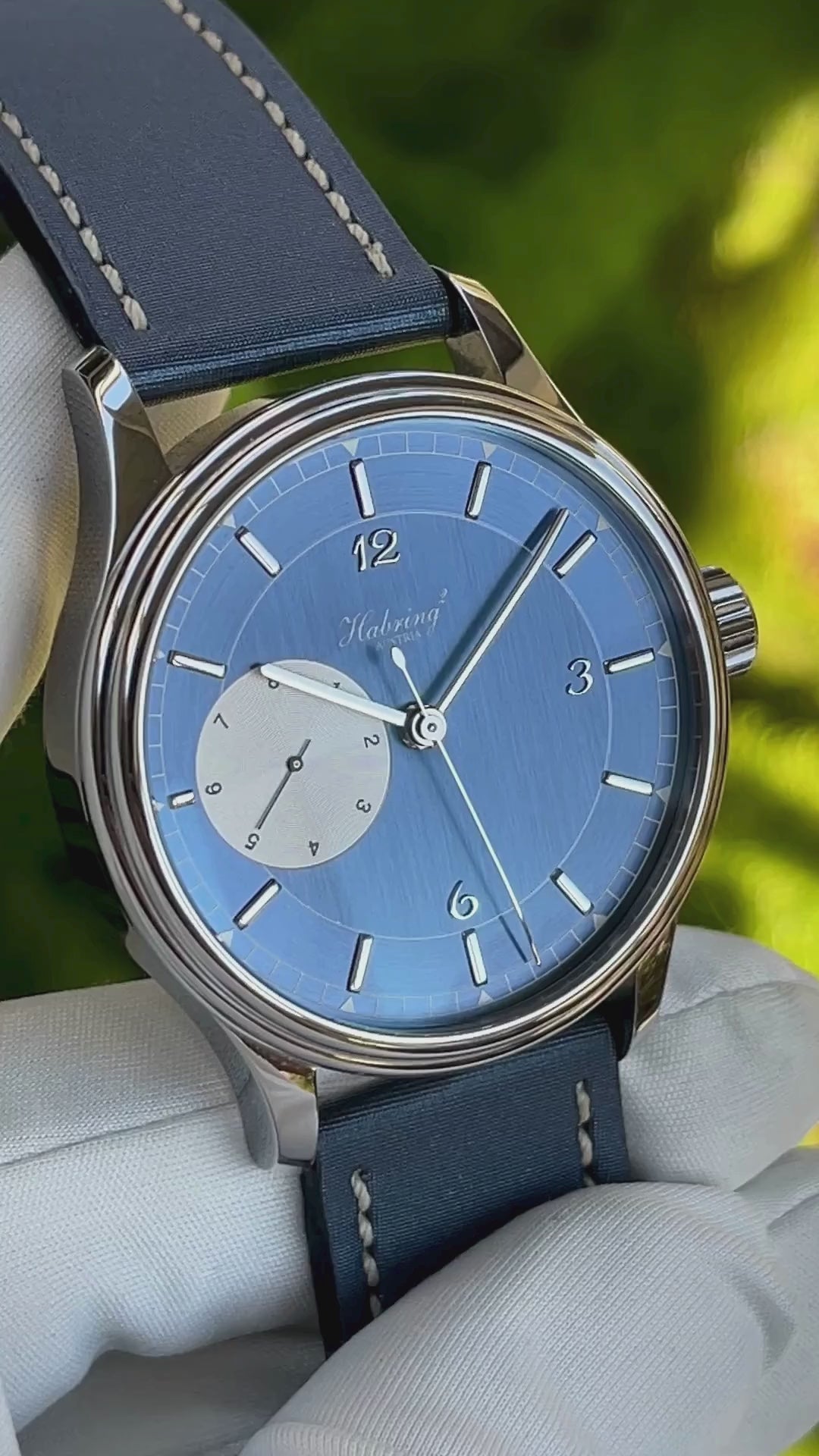 The stainless case measures 42mm x 14.5mm x 52mm lug-to-lug and is attached to the original and well kept Habring² strap. Furnished w/ Box & Papers, Serial# 01-2015.