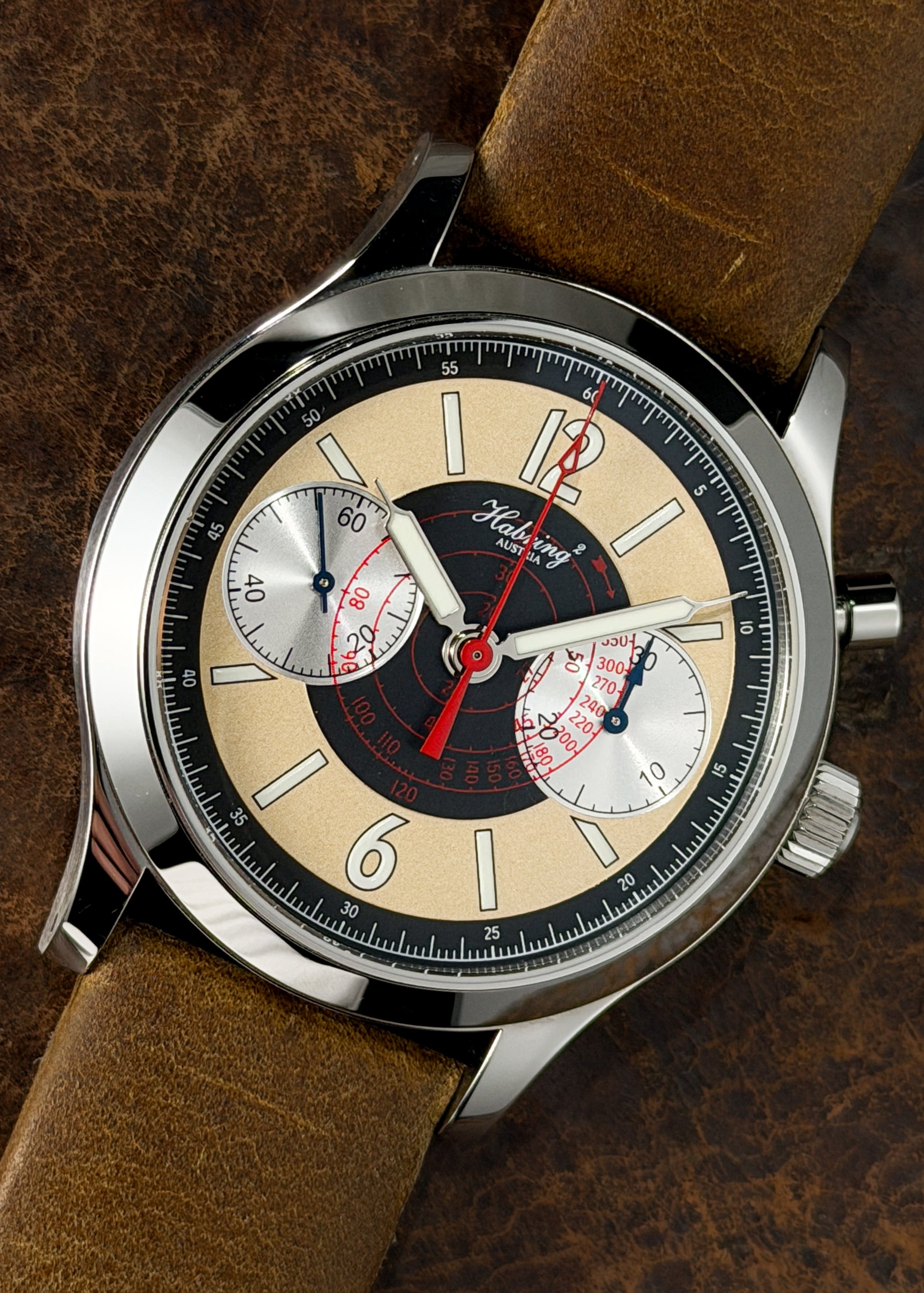 One of the more adventurous dials Habring² has to offer, the Chrono-Felix Sport has a super cool vintage vibe that is really addictive on the wrist. A pusher at 2 o'clock allows for the user to start, stop, and reset the 30 minute chronograph.