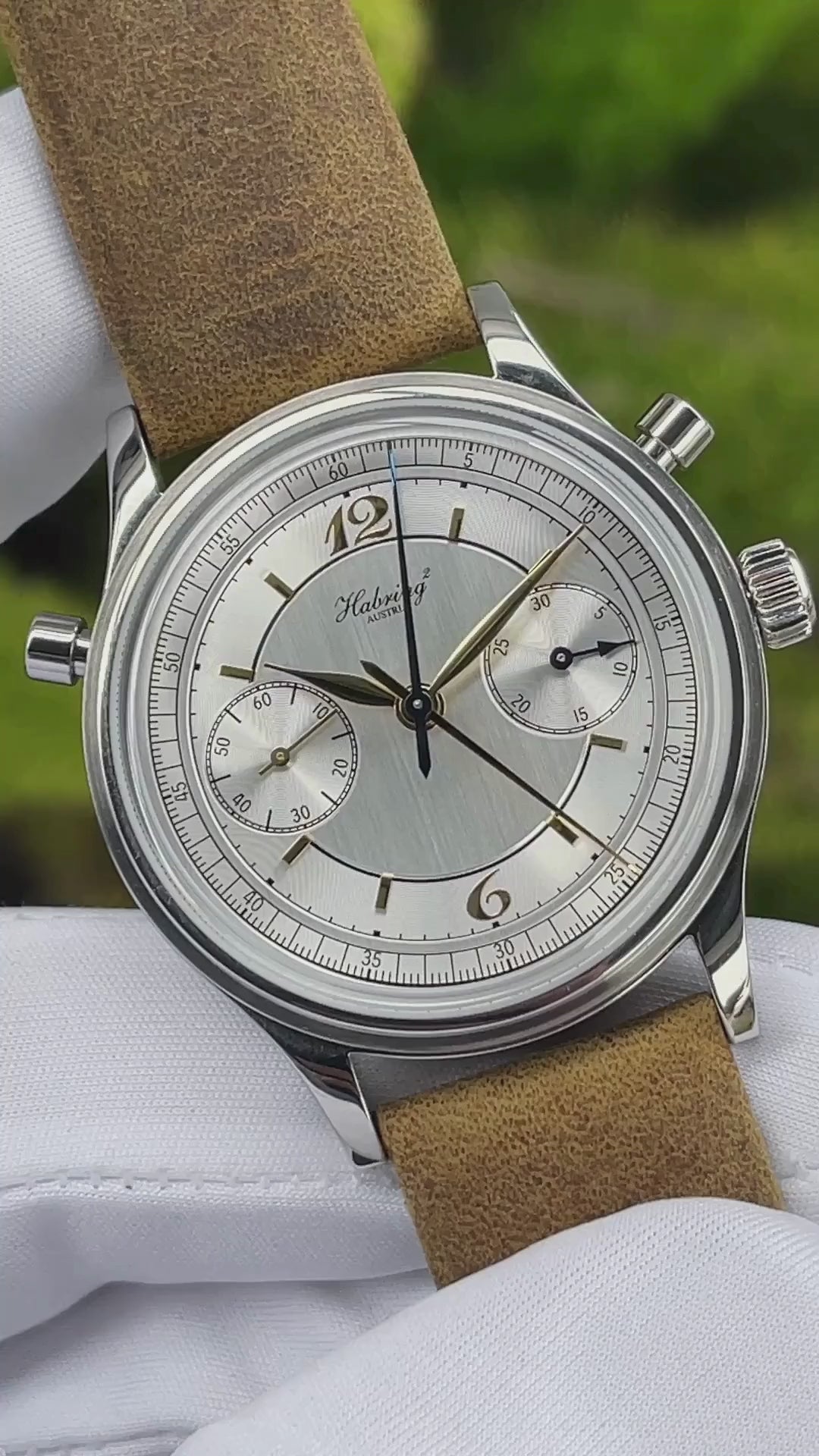 The Stainless Steel case measures 38.5mm x 12mm x 46mm lug-to-lug and is in mint condition. The Habring² strap is unworn. Complete with Box & Papers dated January 8th, 2024.