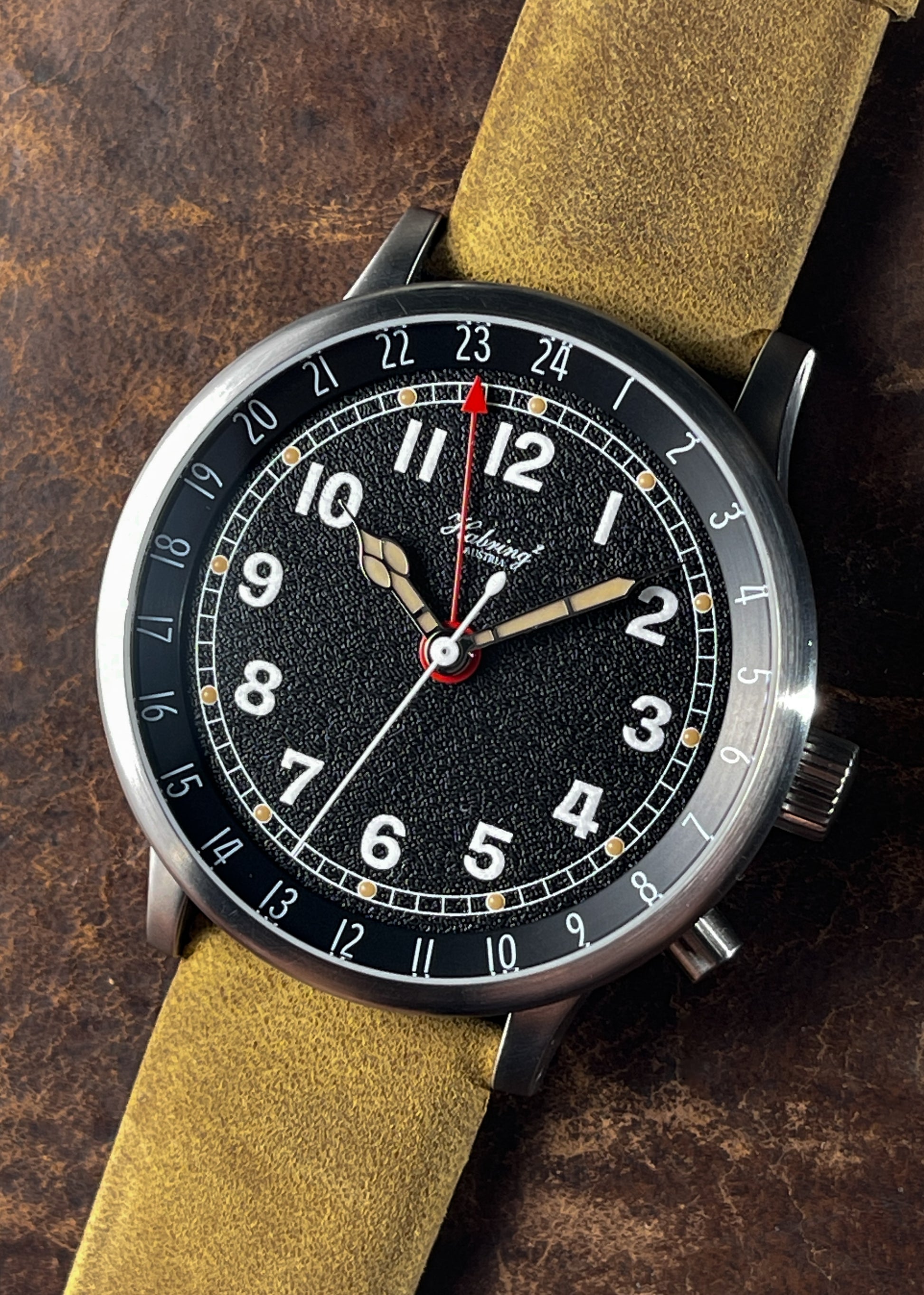 One of the secret watches from the Habring² catalog is a Globetrotter seen in the style of an Erwin Pilot!