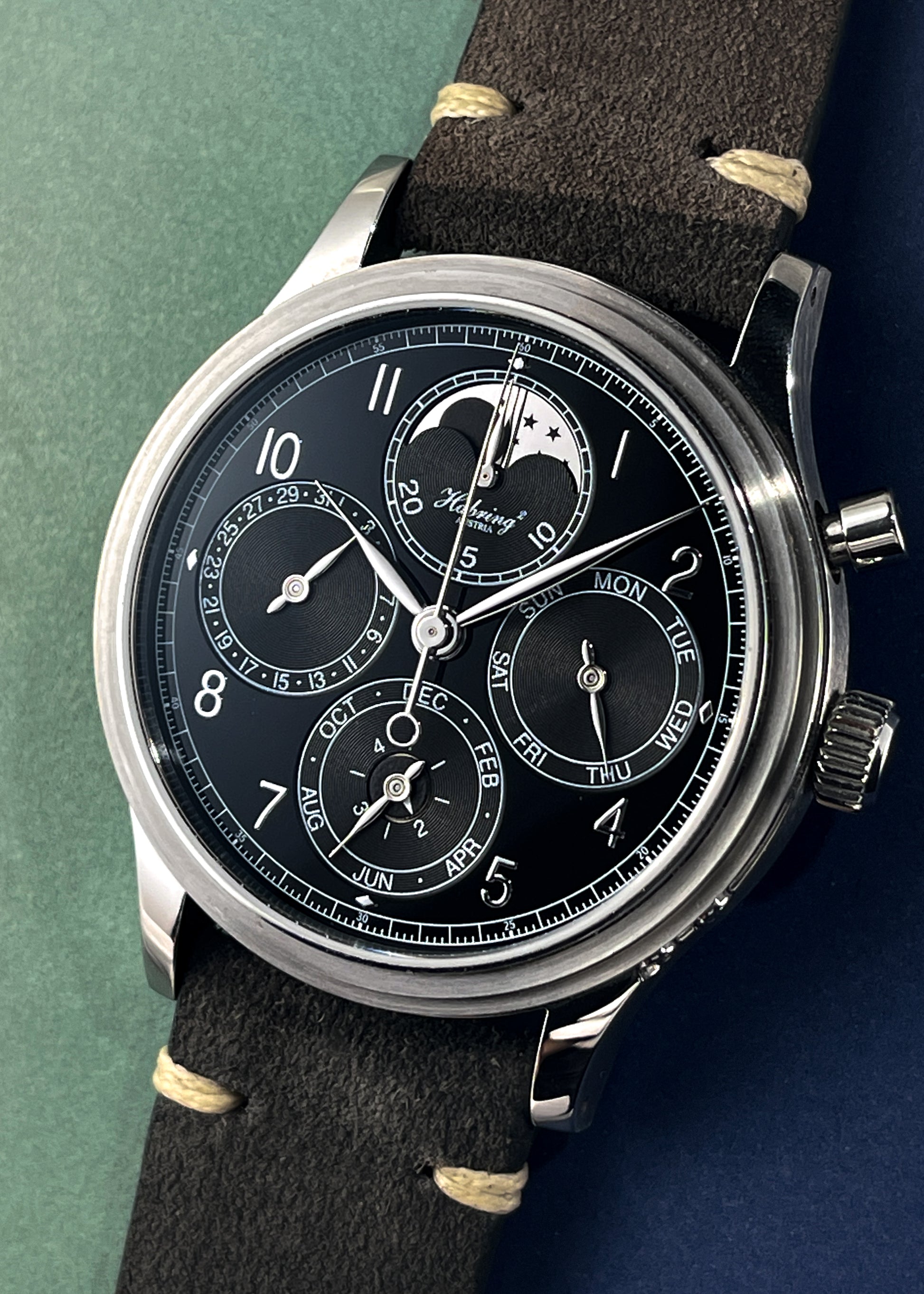 A stellar offering from Habring² is this Chrono-Felix Perpetual in collaboration with Massena LAB. For this watch with Perpetual Calendar, Moonphase and Monopusher Chronograph, Habring² utilizes their in-house A11CP caliber with 48 hour reserve all constrained in a compact 12mm thick case (including crystal).
