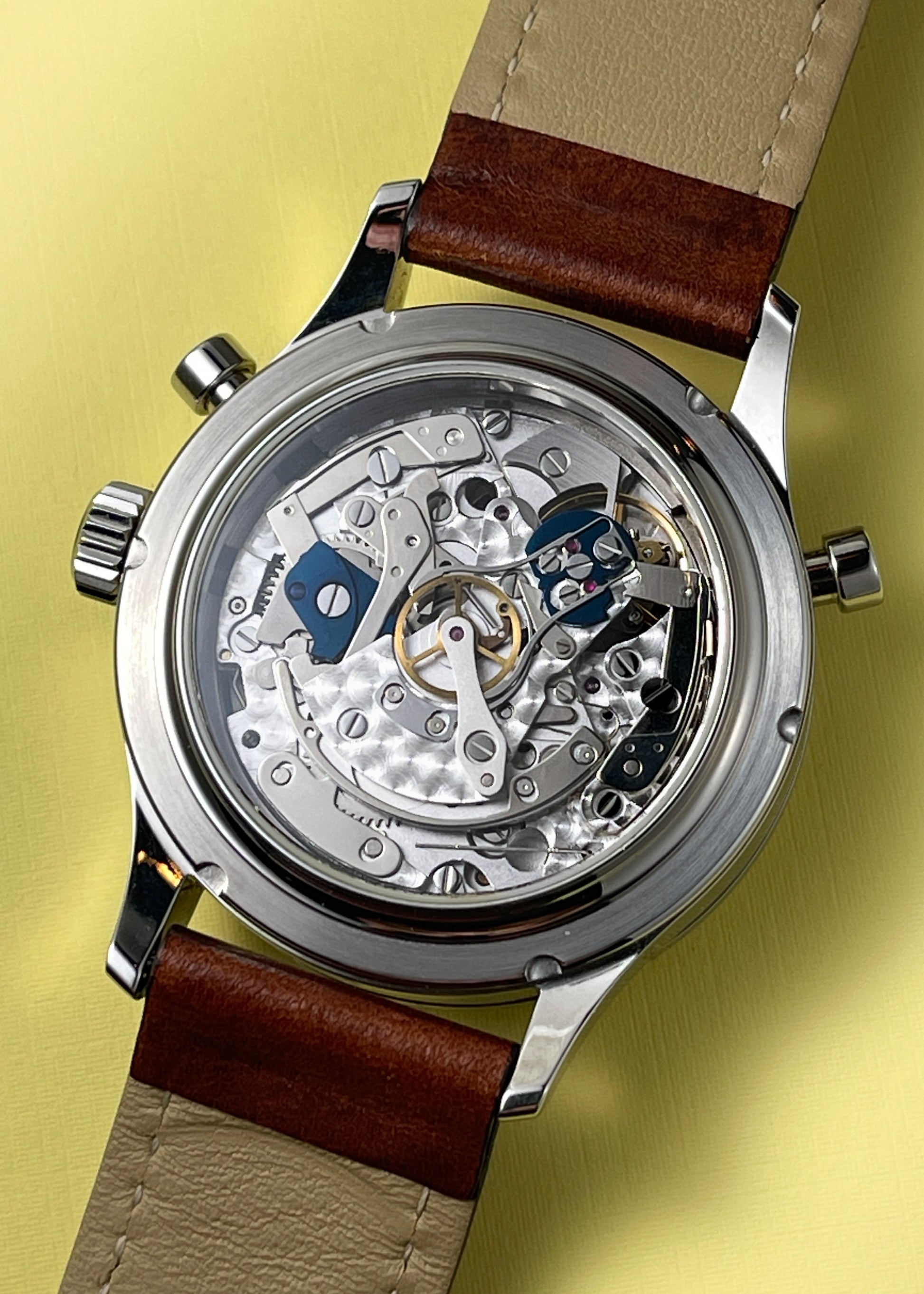 An interesting take on Richard's famed rattrapante chronograph, this Doppel 3.1 eschews the subdial usually placed at 3 o'clock to measure up to 30 minutes of elapsed time with a centrally located minute counter allowing the wearer to measure up to 60 minutes with improved legibility.