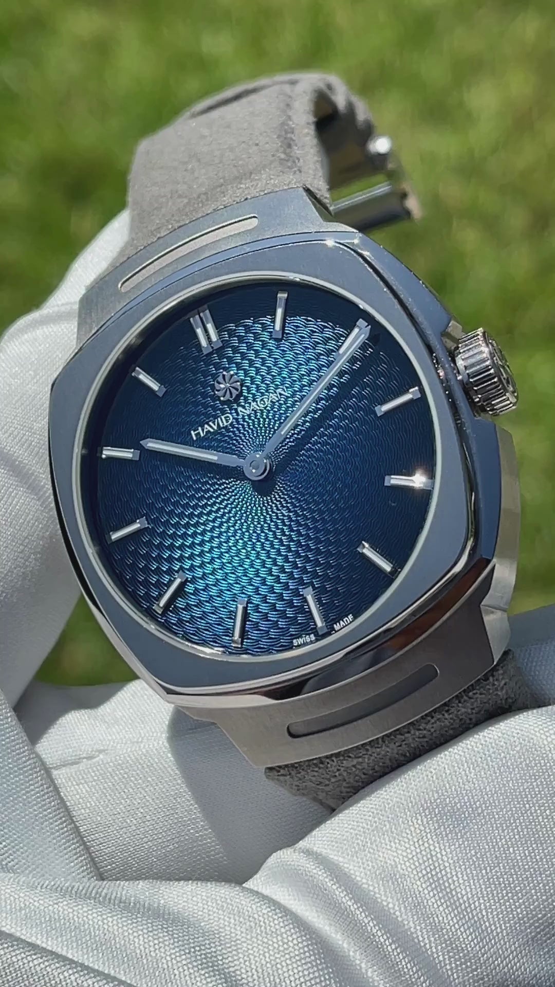 This piece features a lovely "Arka Blue" dial w/ a circular Grain d' Orge guilloche pattern. The Grade 5 titanium case measures 40.7mm in diameter x 12.2mm thick at its slimmest point, and 14.8mm at its thickest. This may sound a little thicker than most prefer, however the entire caseback (sapphire crystal included) curves in a way that makes this watch super comfortable on the wrist.