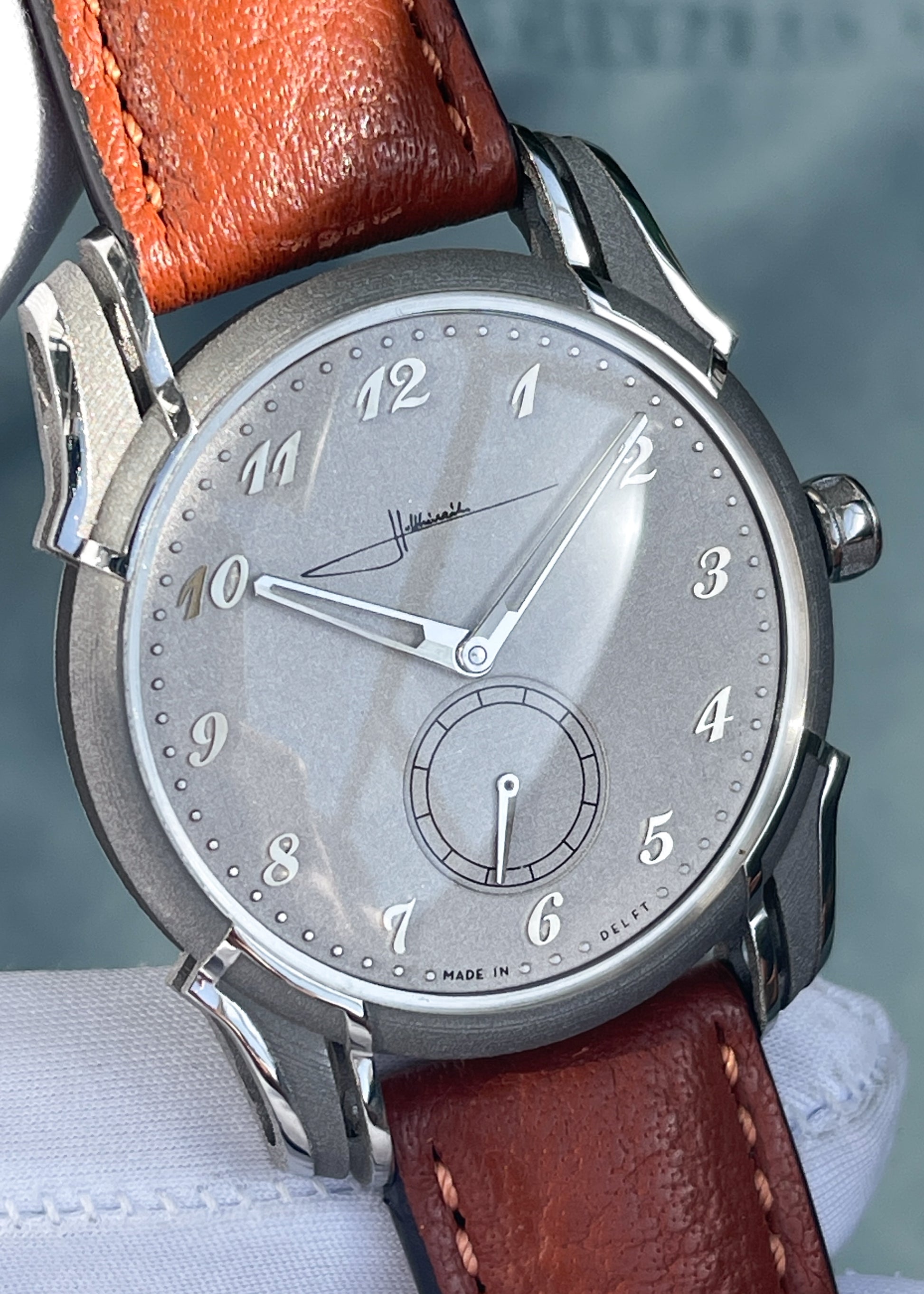 The 316L stainless steel case measures 38mm x 9mm (including crystal) x 47.5mm lug-to-lug and is in excellent condition. Complete with Box and Papers dated January 25th, 2021, signed by Michiel Holthinrichs.