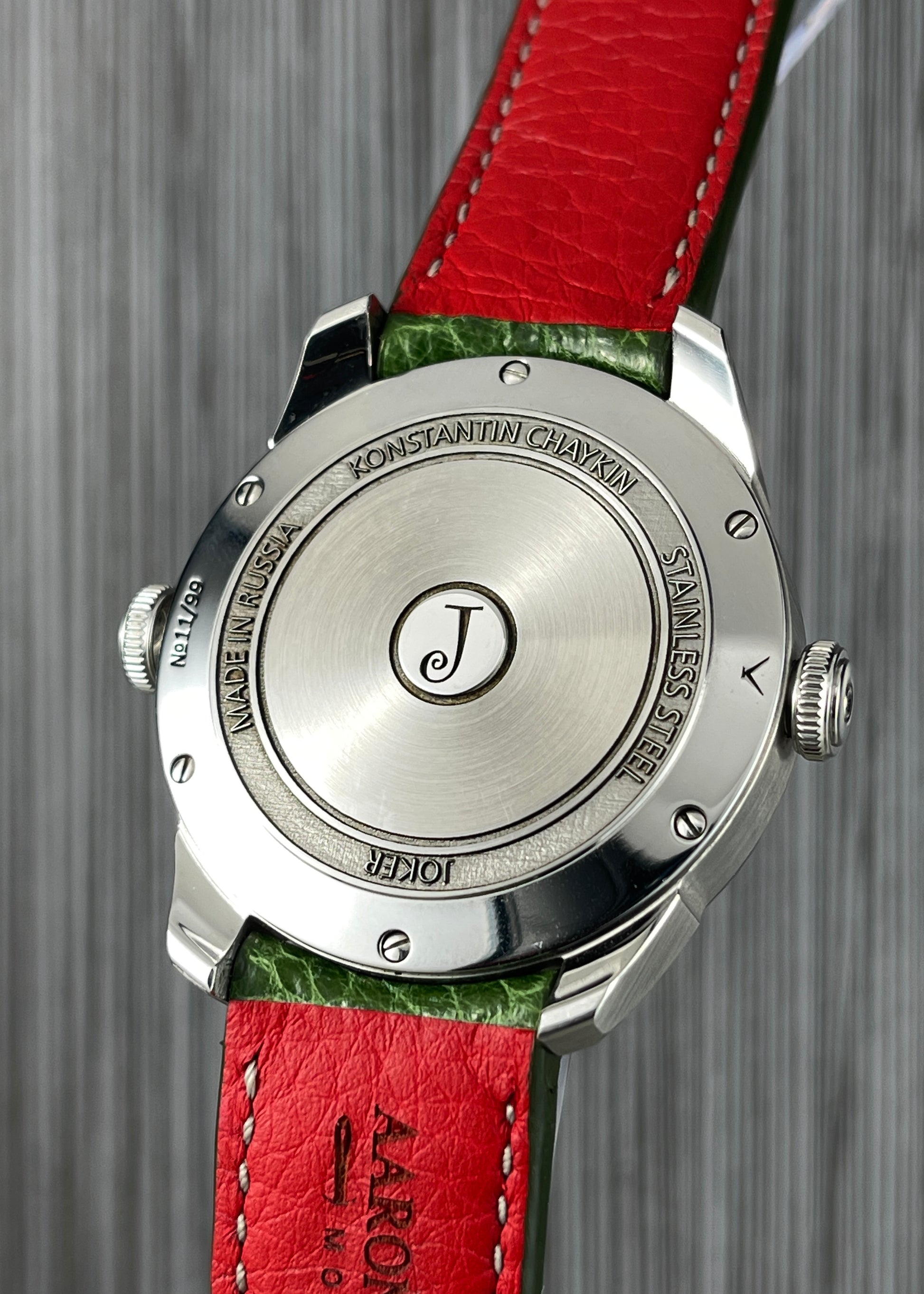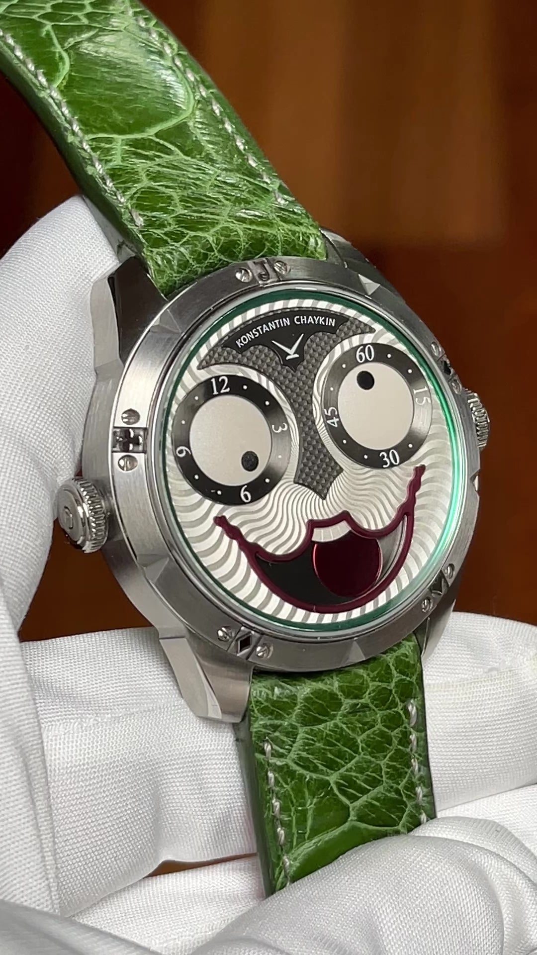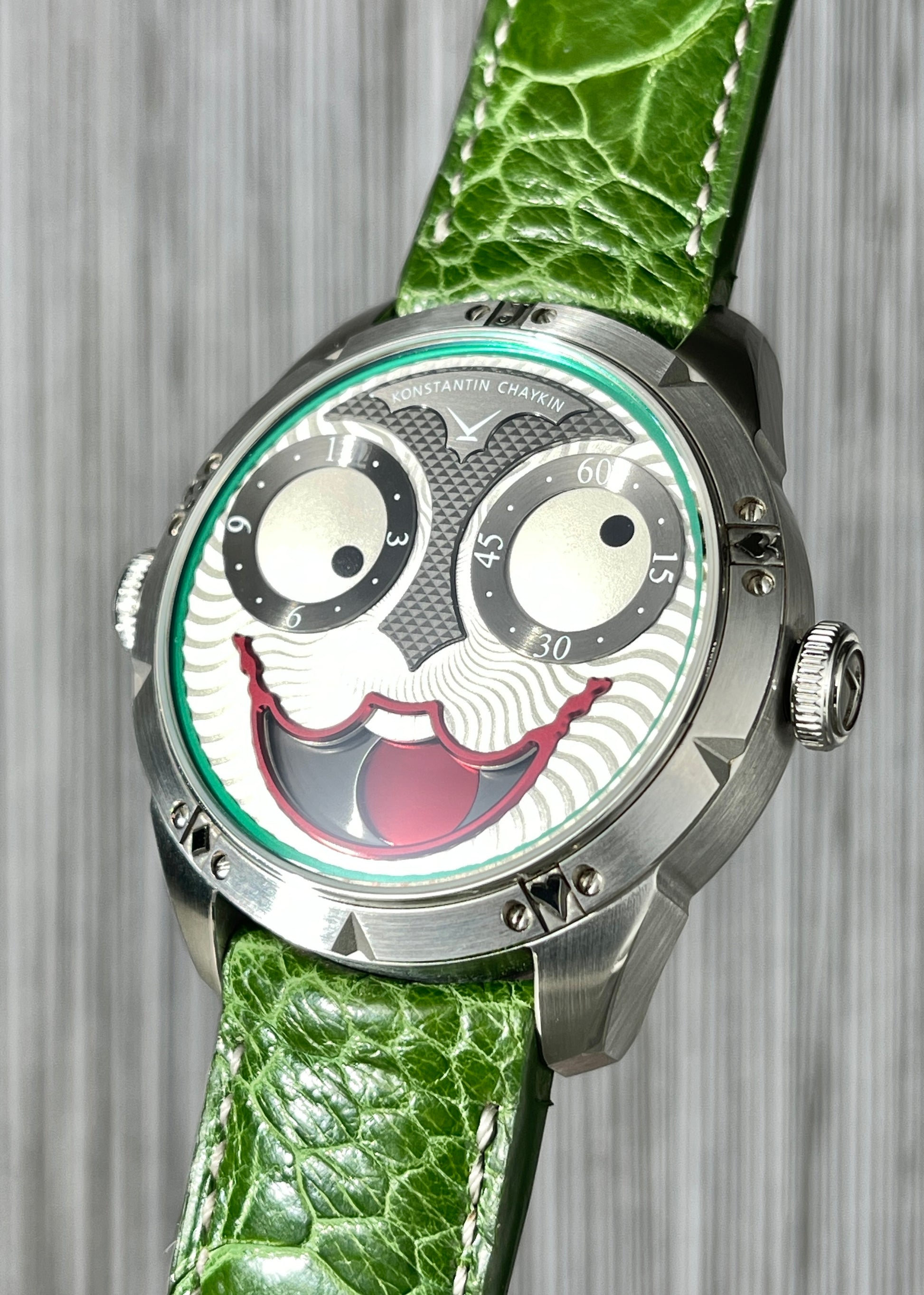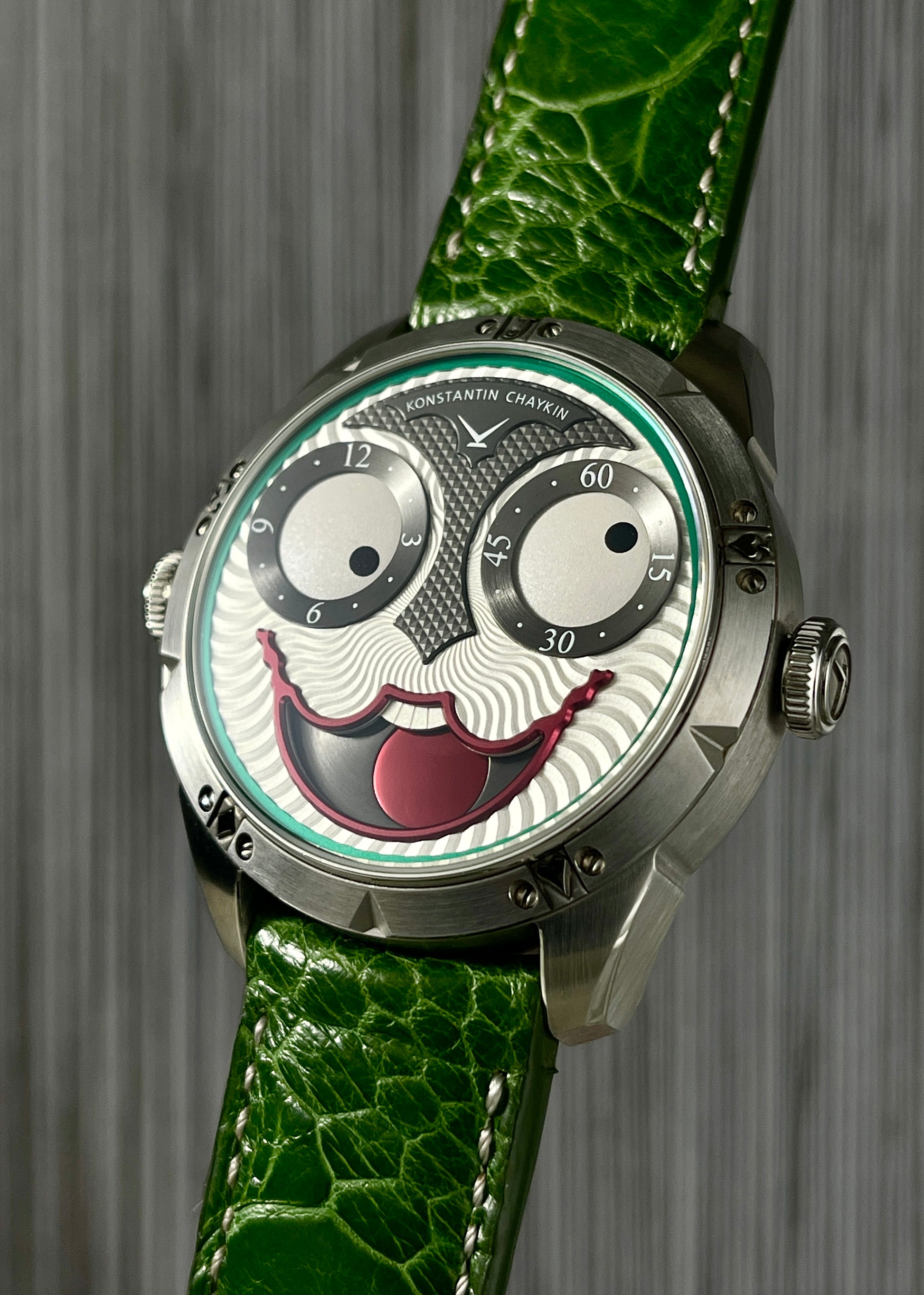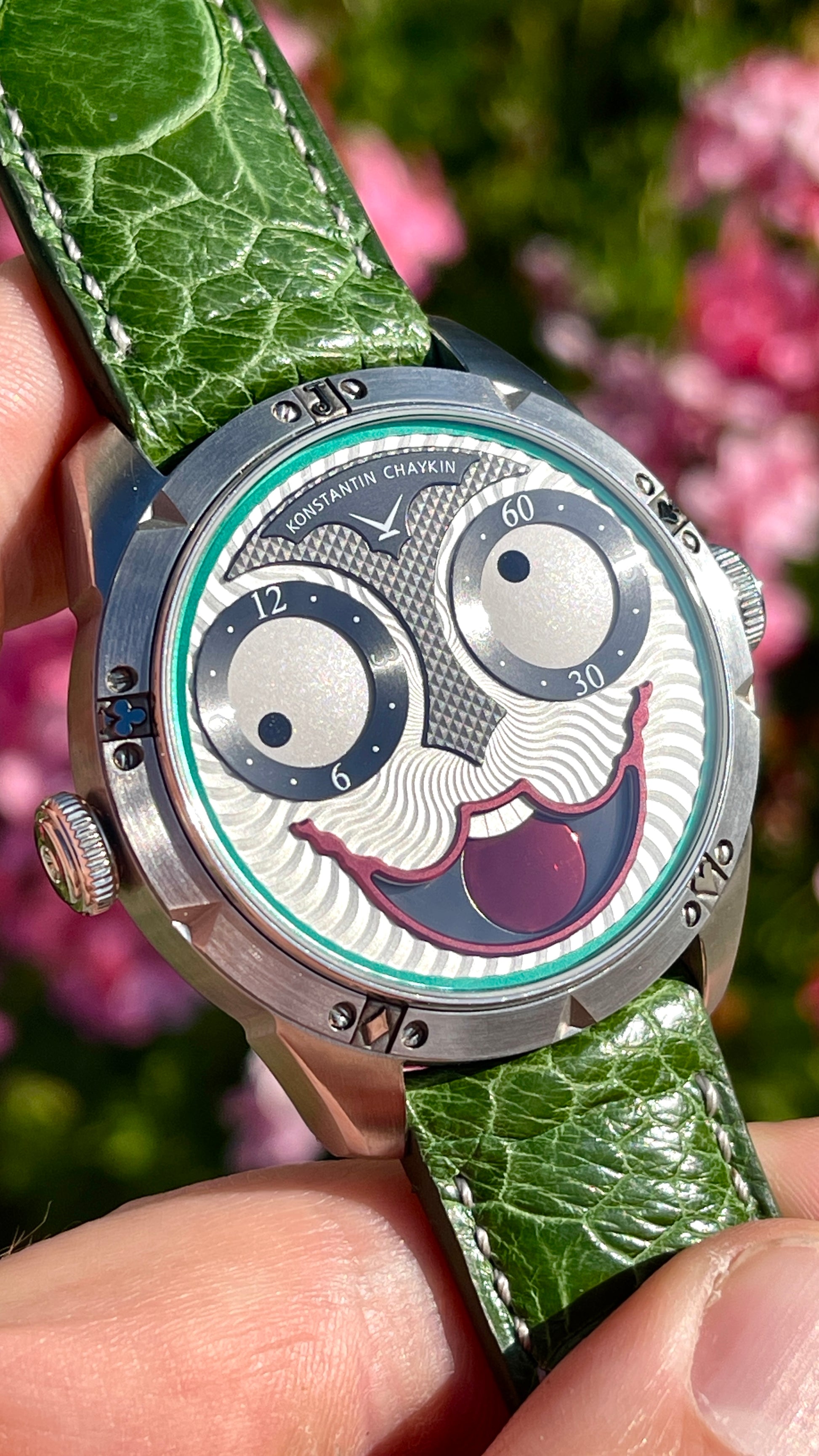 All jokes aside, this is one amazing watch. It can't help but to put a smile on my face and so I can only guess it will work the same magic on you. For this watch Chaykin developed his own double disc rotating mechanism and moonphase module. His Russian manufactory is also responsible in crafting the case, buckle and that truly wonderful dial.