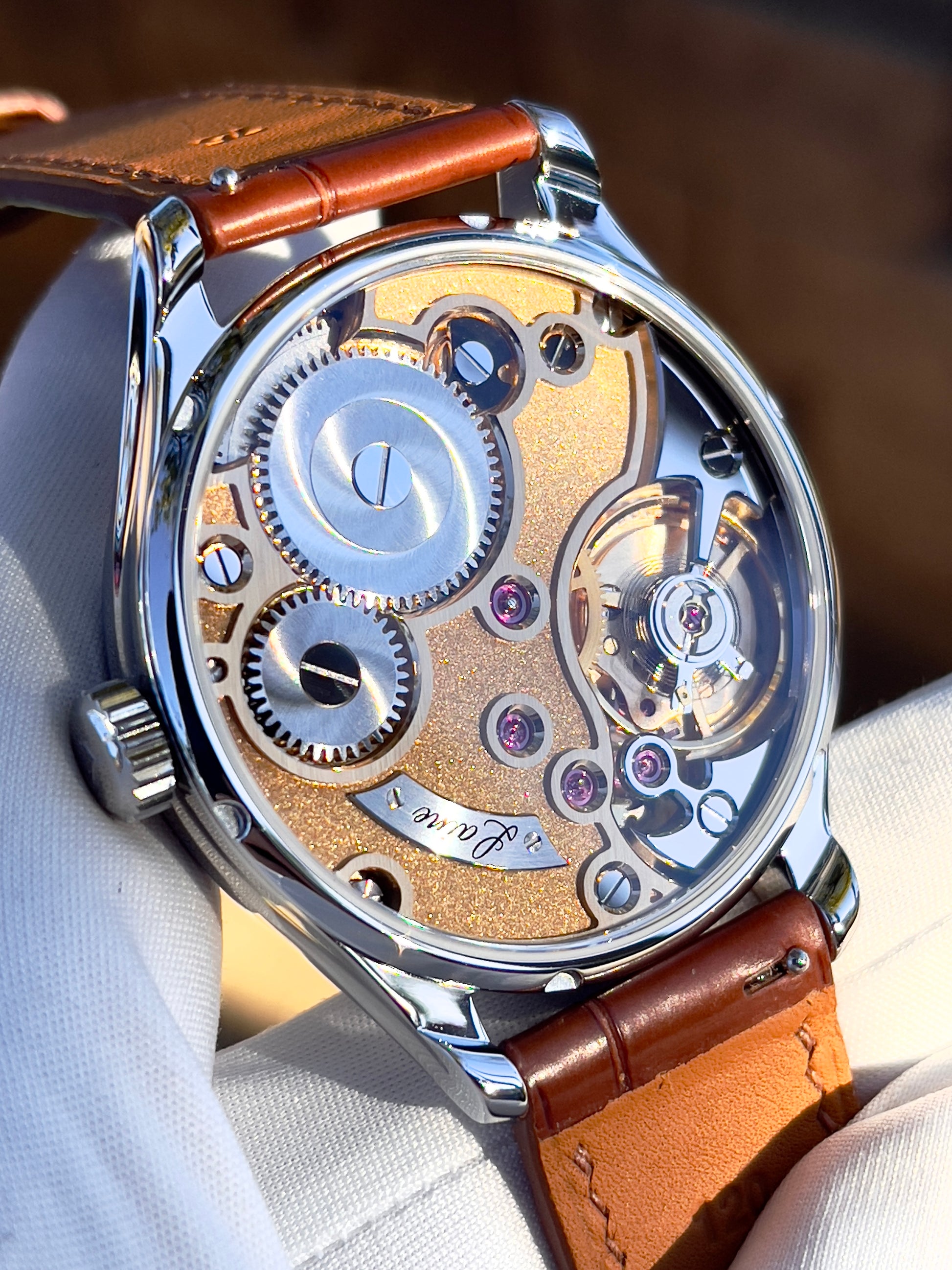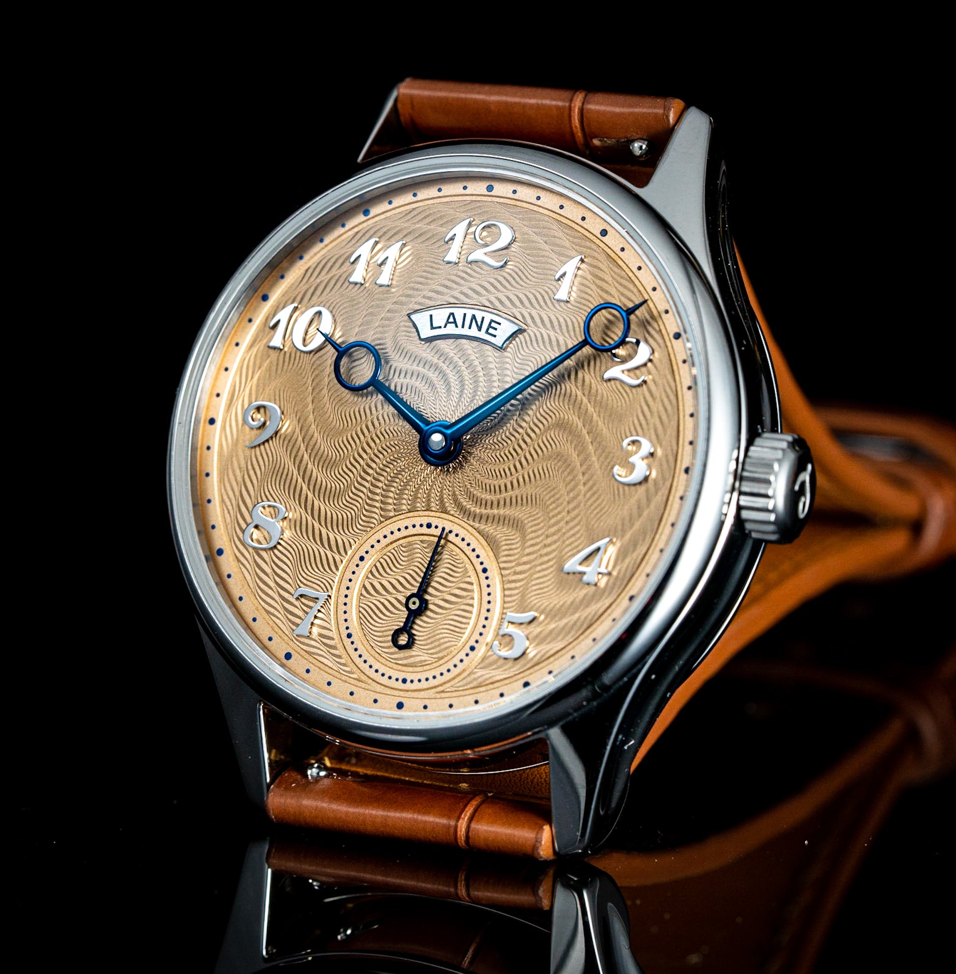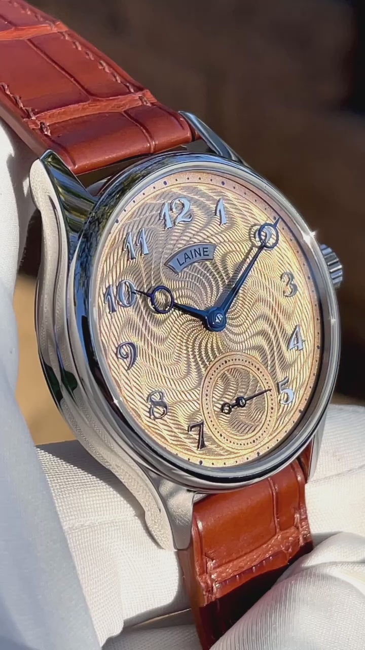 Laine "Gelidus Guilloché" Golden/Salmon Dial w/ Black Polished Cocks & Custom Breguet style hands - Serial #8235 (NOS)