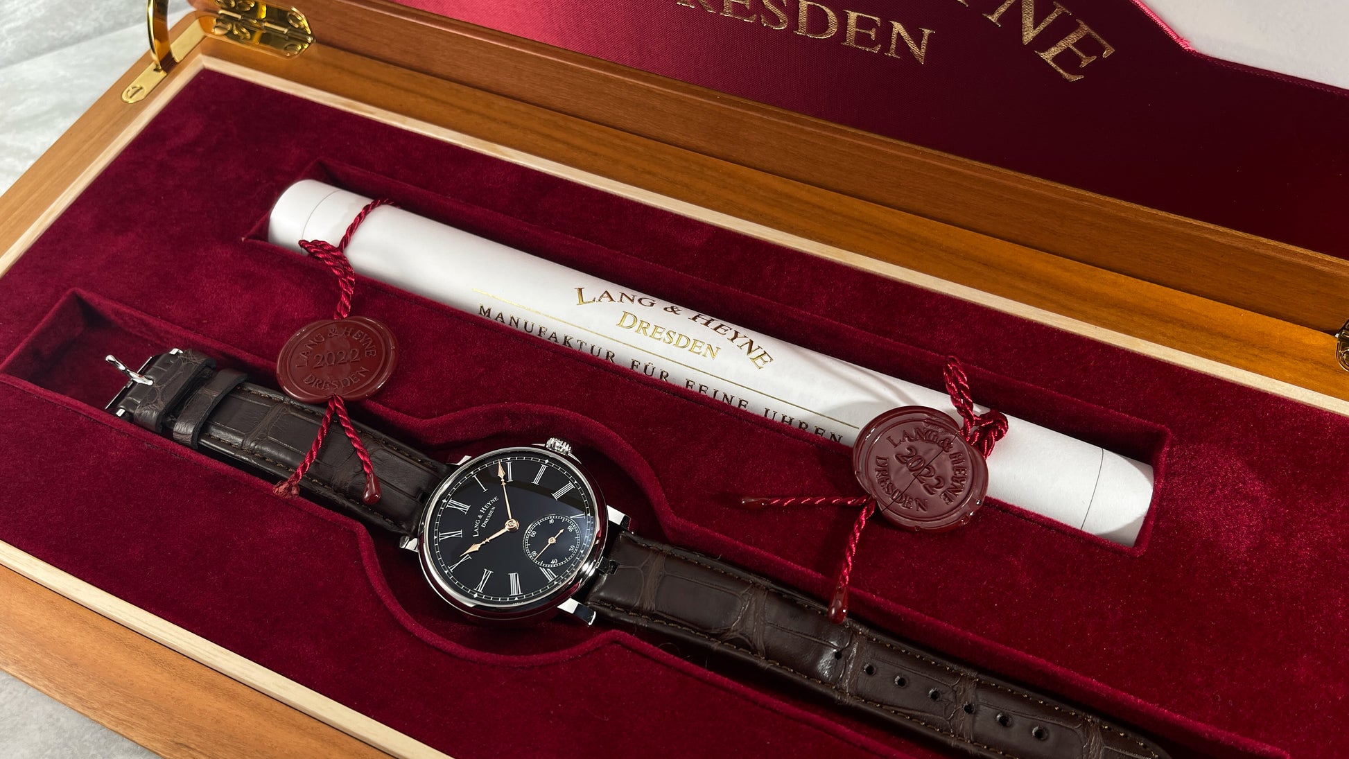 The movement is quintessential Lang & Heyne... tremendous hand finishing, and, unlike some of their other German counterparts, L&H offers a much fuller view of the gear train.