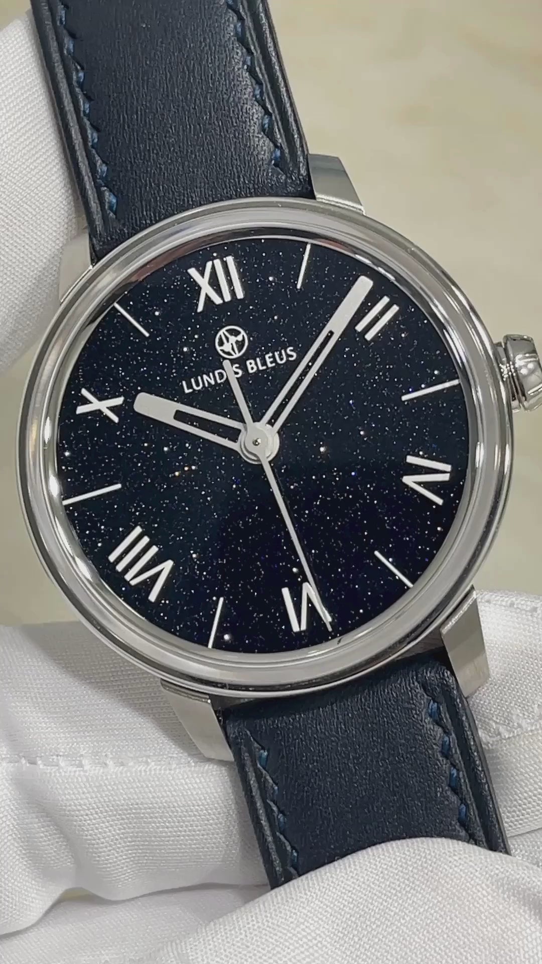 Presenting a mesmerizing dark blue Aventurine dial found on this Ref. 1120 watch by Lundis Bleus. In addition to the spectacular dial, my kudos to Bastien for the design of what I feel is perfect proportionality of the indices and hands.