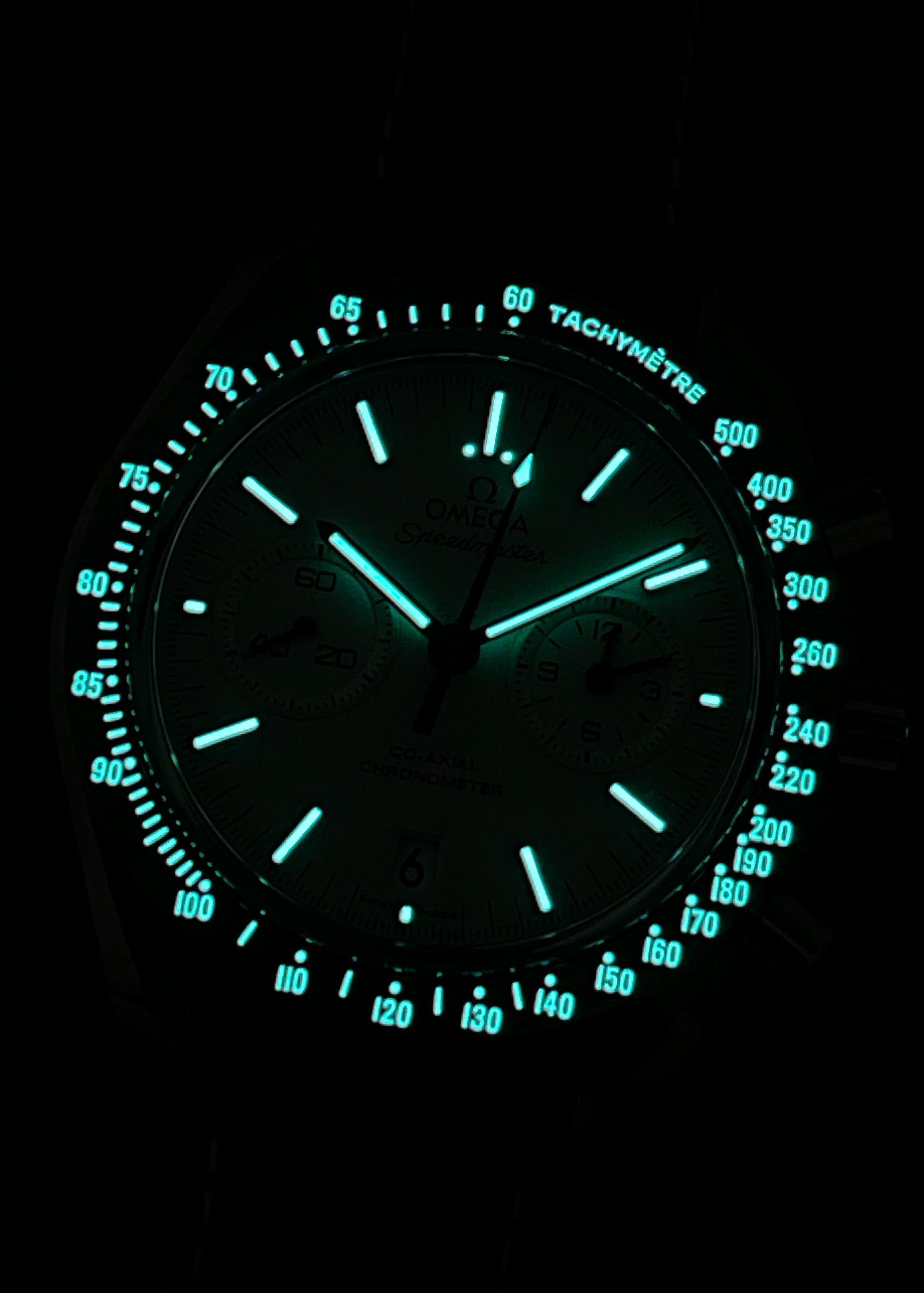 On the reverse side is dynamic view of their 9300 in-house caliber with 60 hour power reserve spread across two barrels. Please see the third side to view the incredible lume of the dial, hands, and bezel.