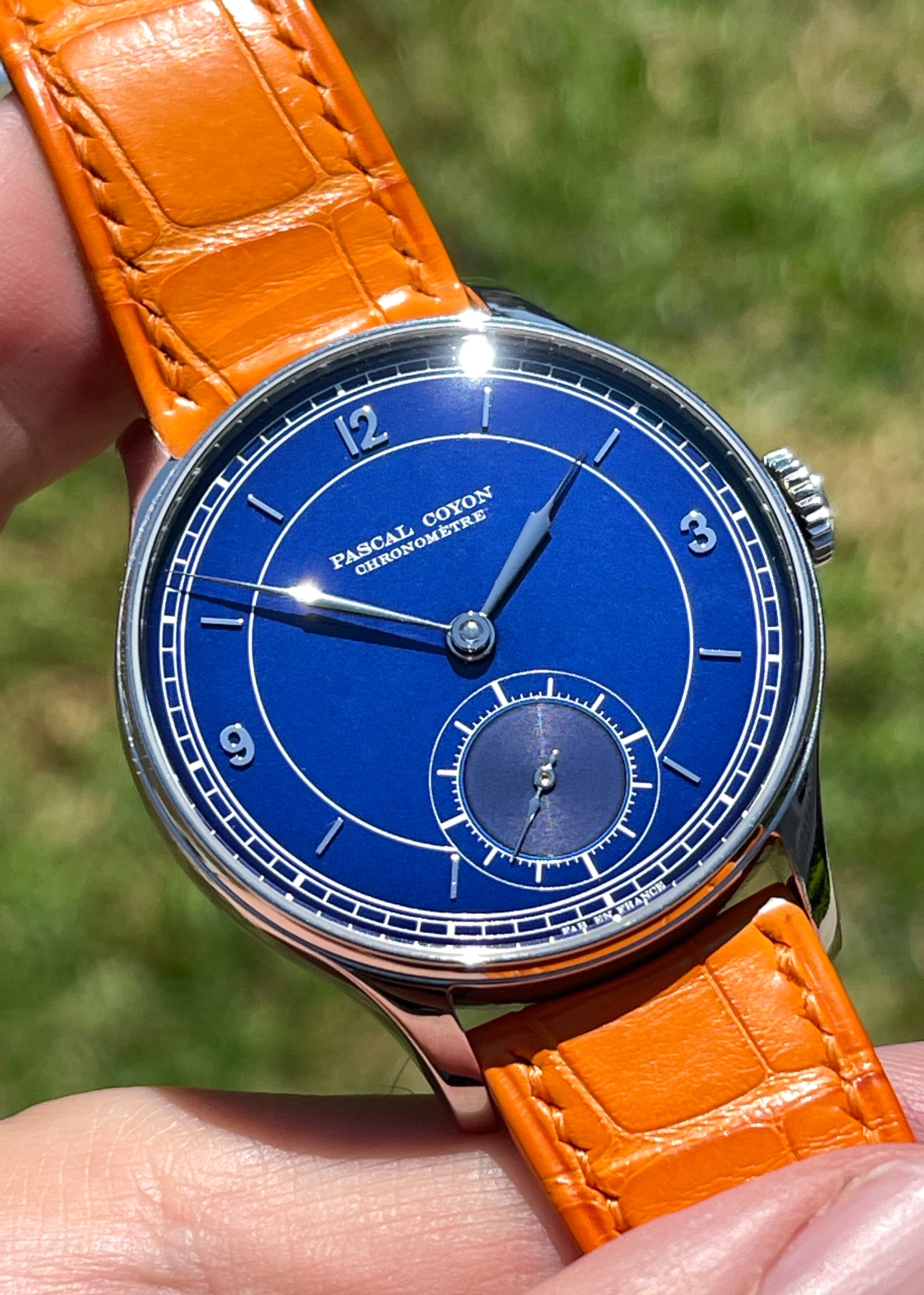 The magnificence of Pascal Coyon is on full display with this exceptionally finished dress watch. This piece, a very rare example of Mr. Coyon's Series 2, features his in-house Caliber 19 which has been absolutely hand-finished to the nines. Upon completion, the movement was submitted to the Besançon Observatory where it underwent testing to achieve Chronometer certification.