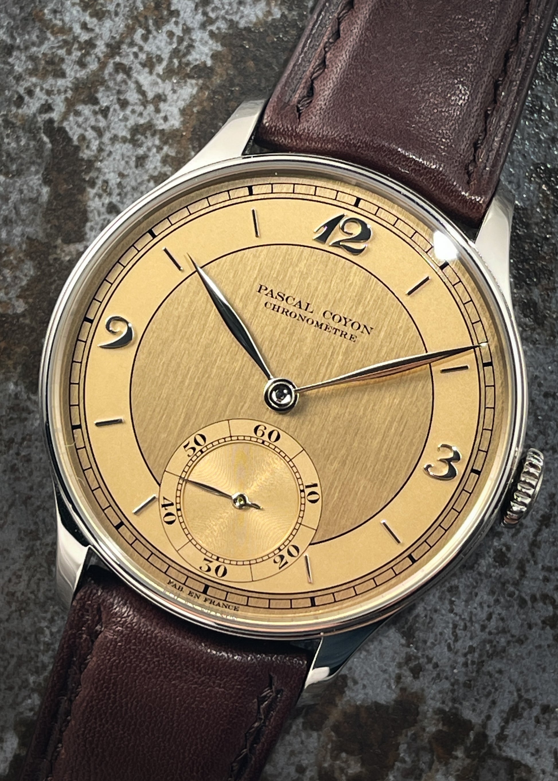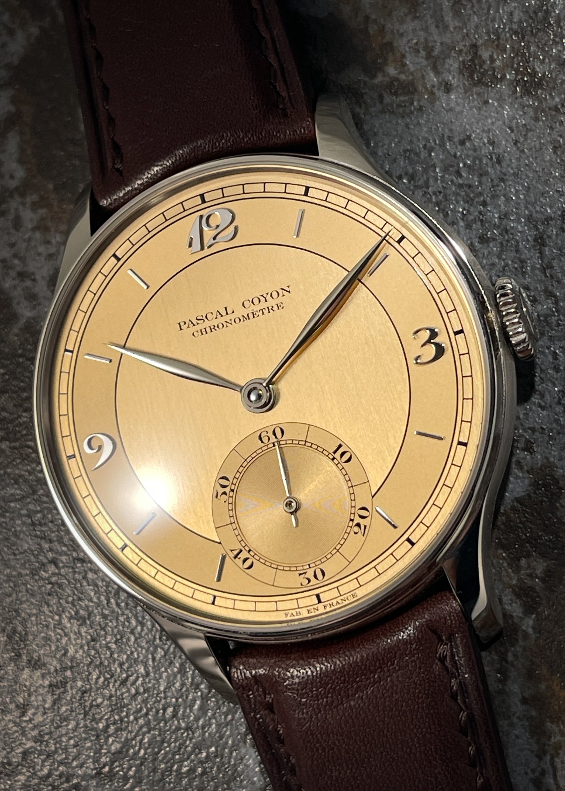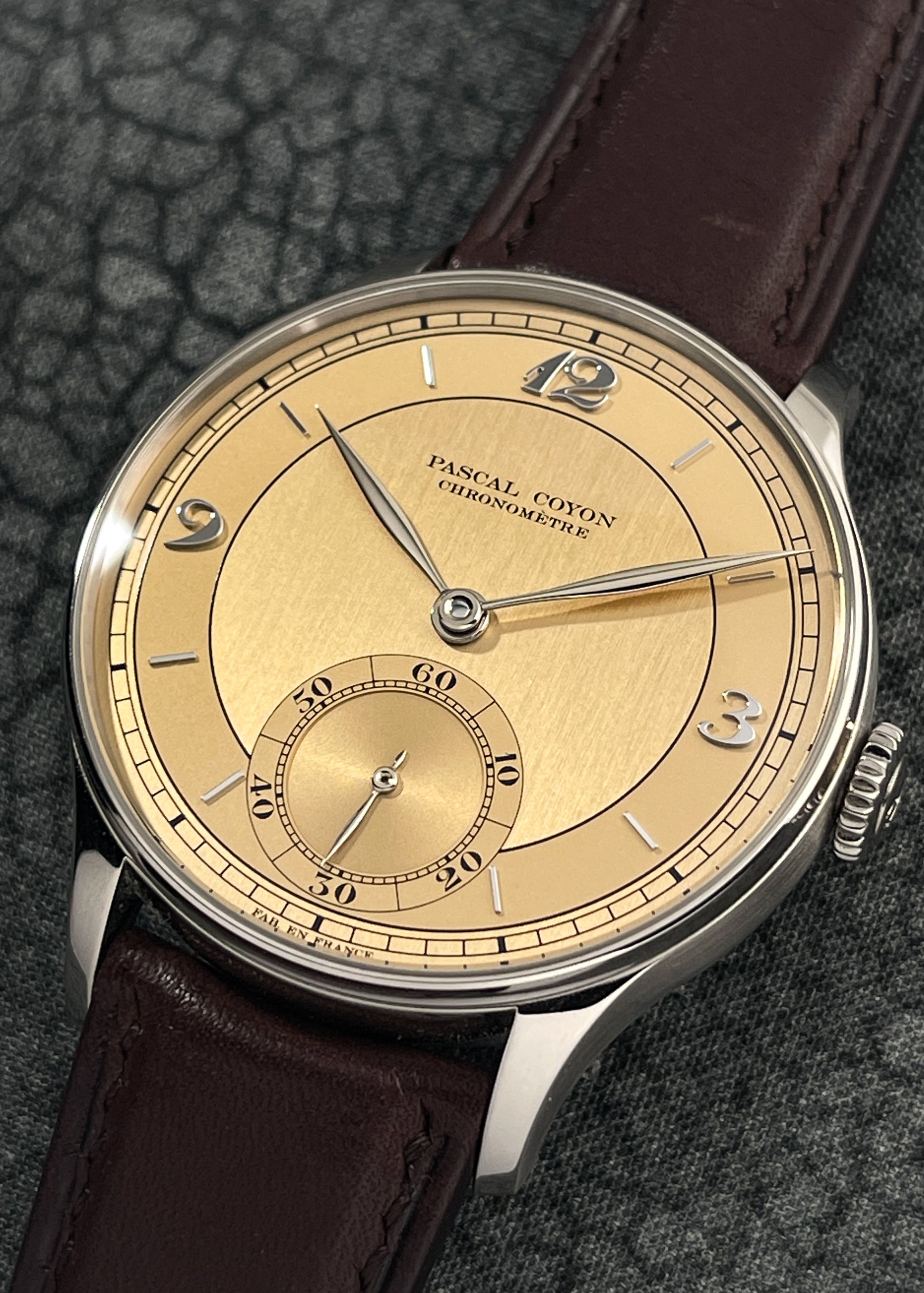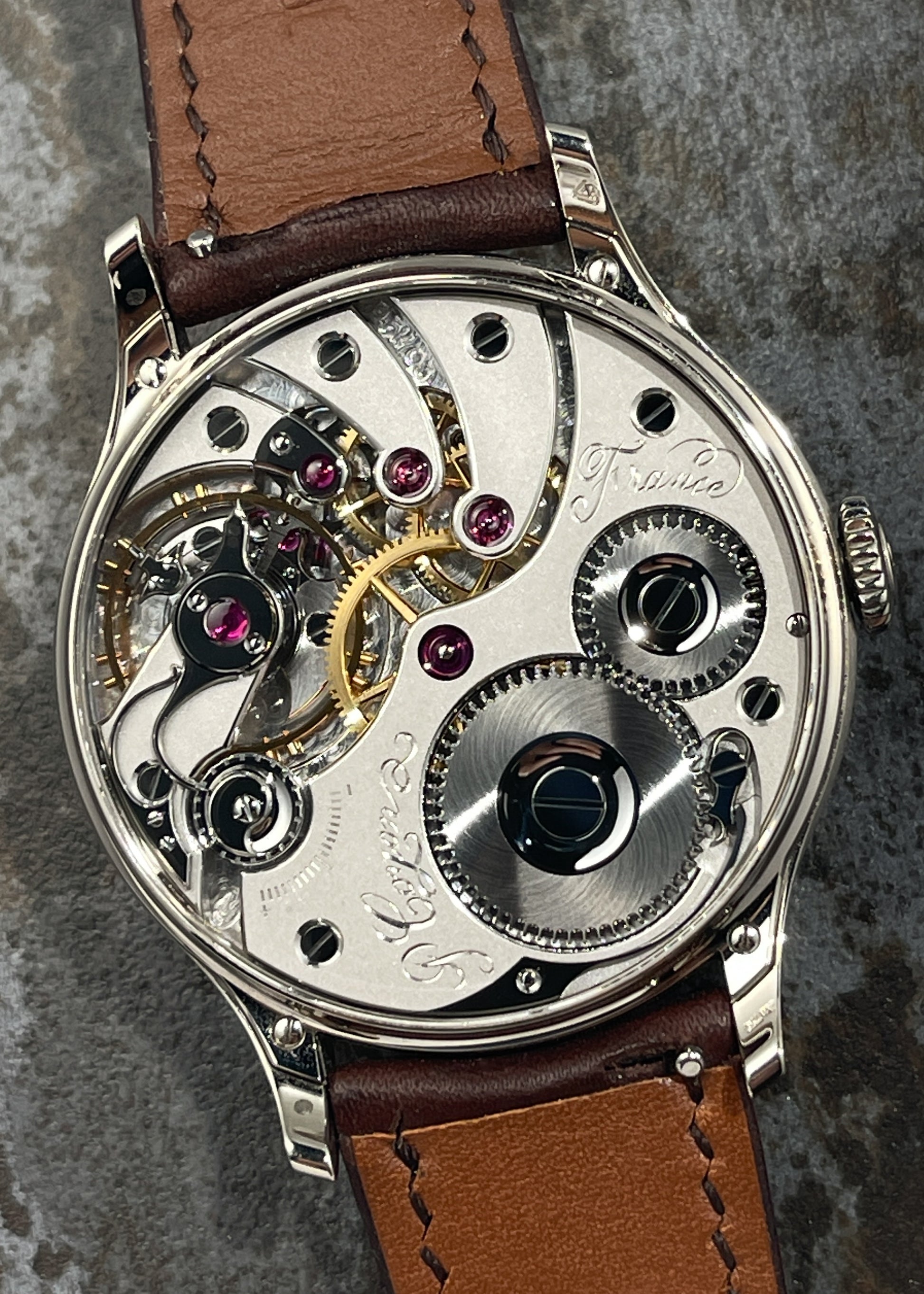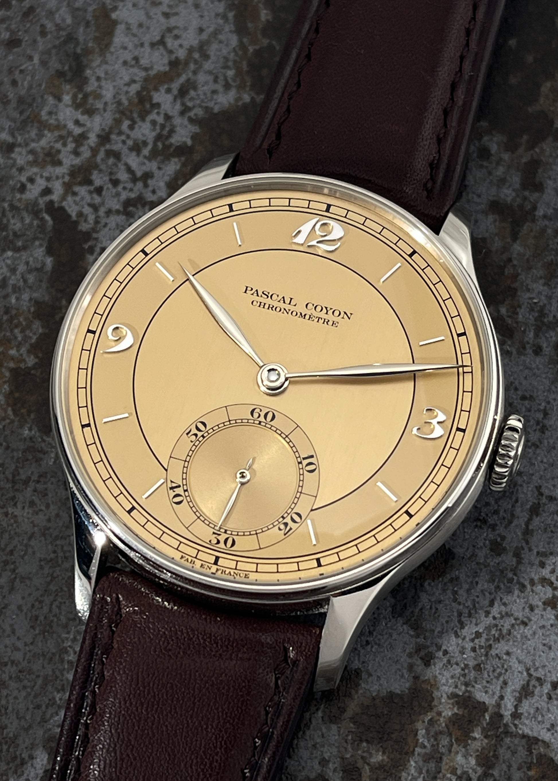 The magnificence of Pascal Coyon is on full display with this exceptionally finished limited edition of Mr. Coyon's "Series 2" for the Hong Kong market. The in-house Caliber 19 measures 16 lignes and is exhibits exemplary hand-finishing. The movement operates at an eye pleasing 2.5Hz and carries a power reserve of 40 hours. Upon completion, the movement was submitted to the Besançon Observatory where it underwent testing to achieve Chronometer certification.