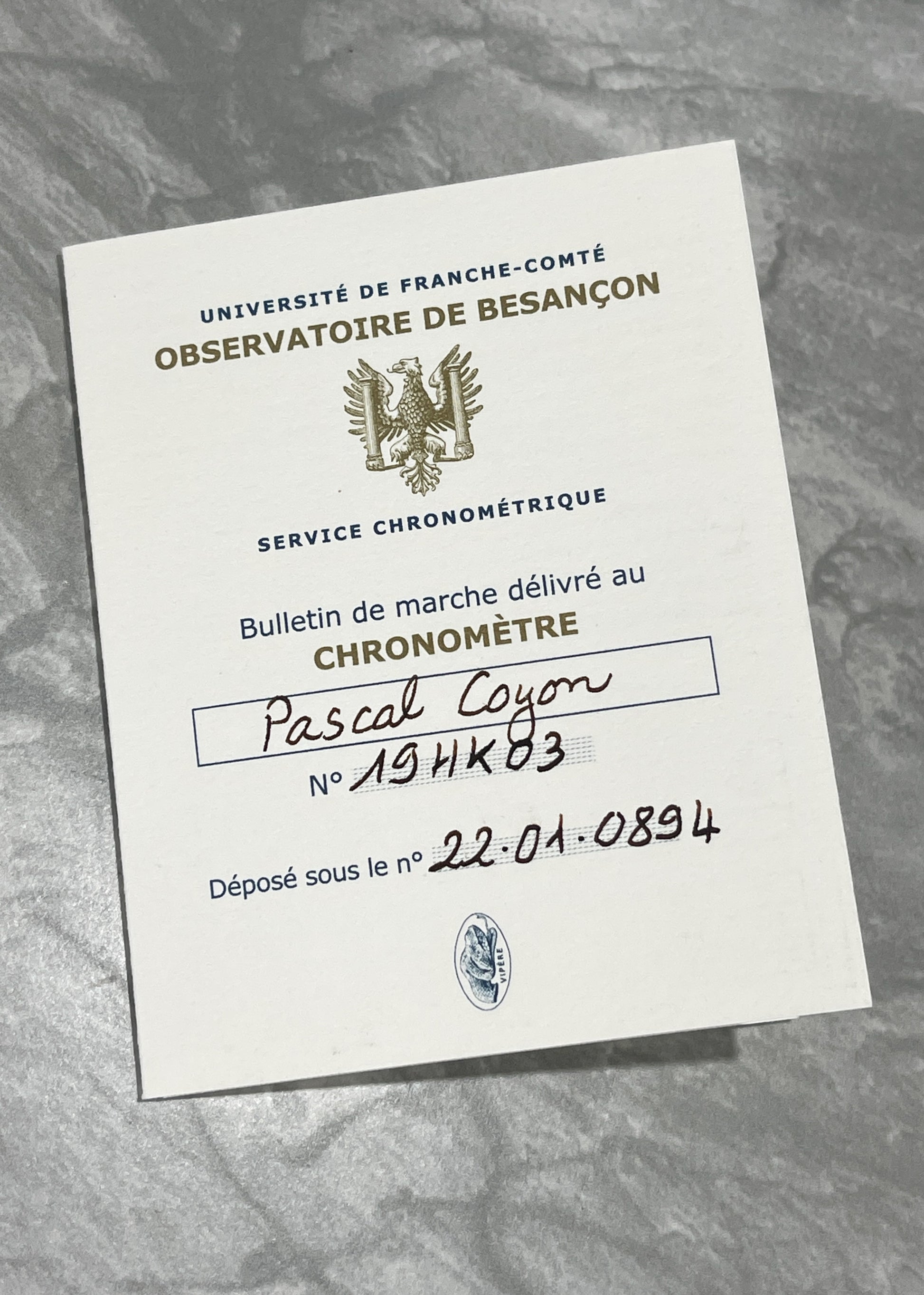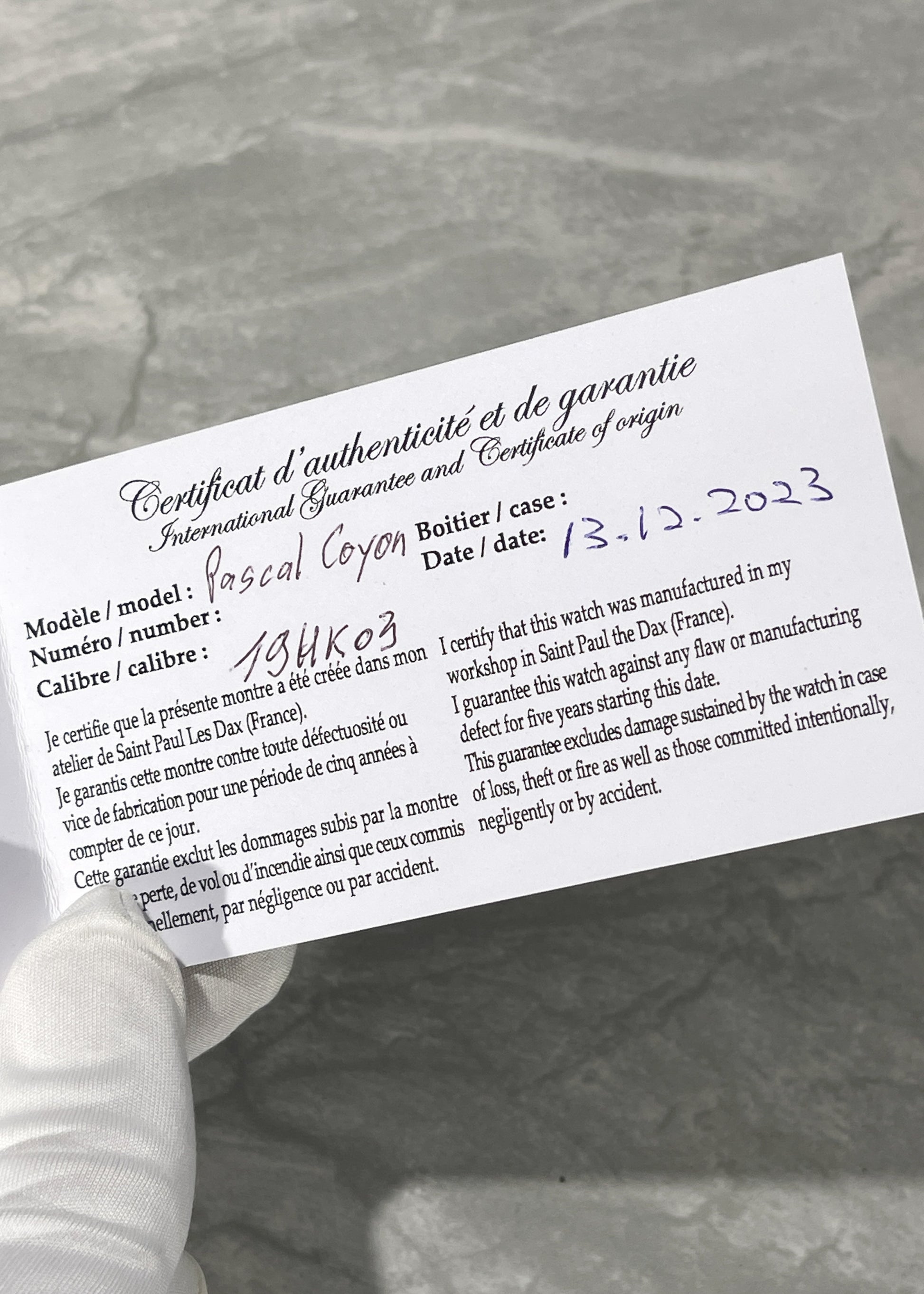 The 18 karat white gold case is in excellent condition and measures 39.8mm x 10.5mm x 47mm lug-to-lug. Complete with Box, Warranty Certificate dated December 13th, 2023, and Chronometer certificate by the Observatoire De Besançon. At the time of listing approximately 3.5 years remain of the 5 year Pascal Coyon Warranty.