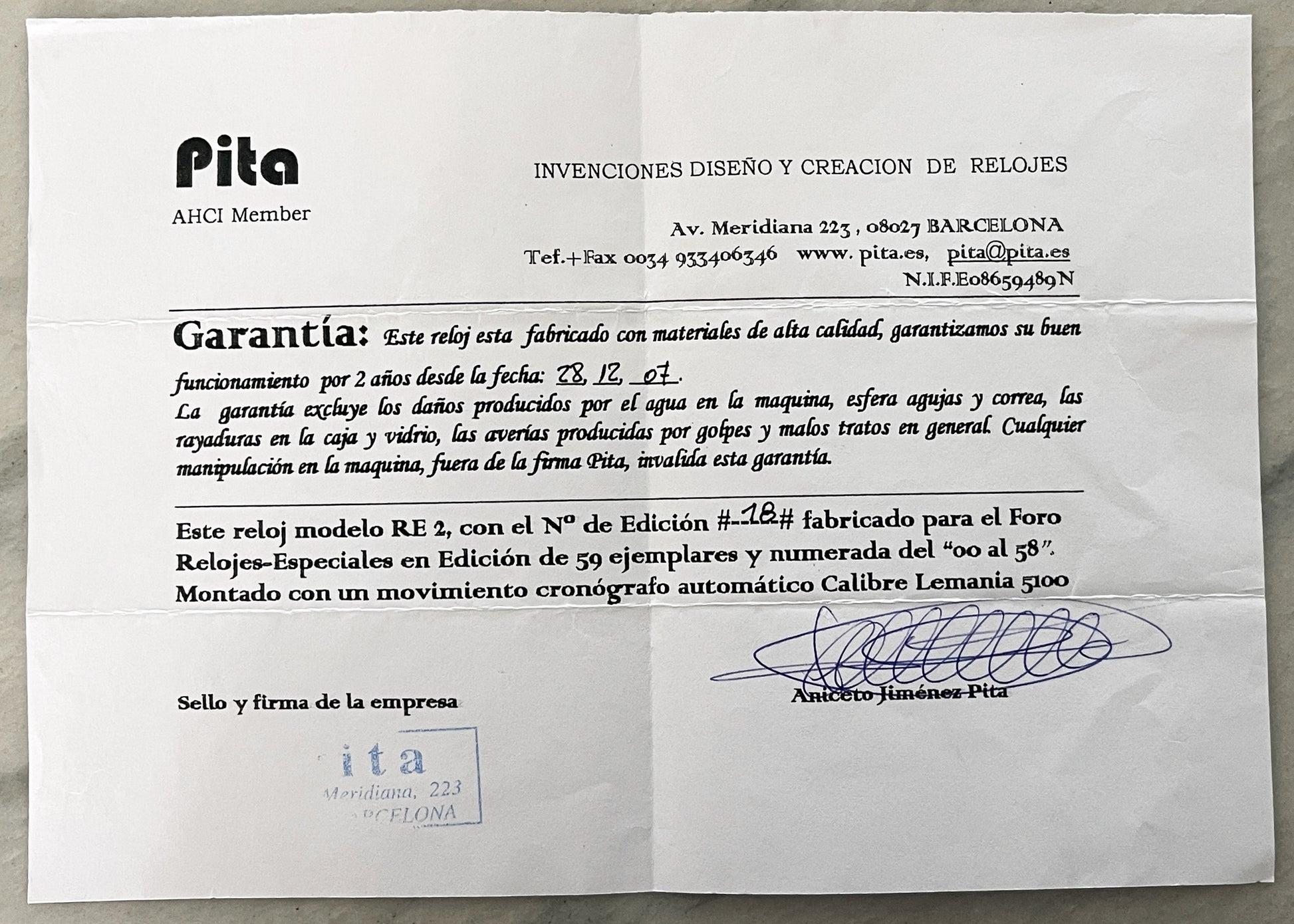 PITA Barcelona "RE 2" Chronograph - Special Edition #18/58 (Pre-Owned)