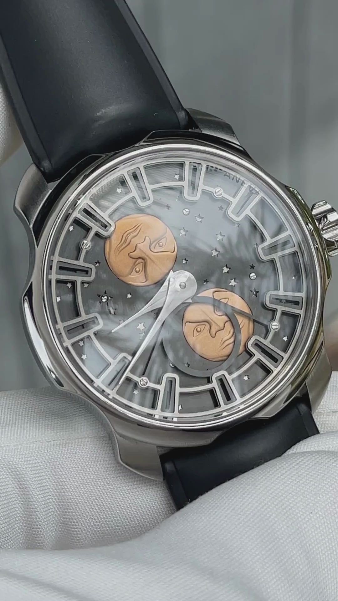 The moon faces themselves are crafted in solid 18k gold.