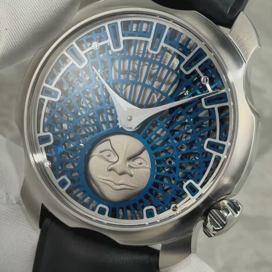 Stepan's inspiration for the Supermoon blends urban and natural elements, drawing from the intricate ironwork of Helsinki's pavements. His vision for the Moon on his Korona watches was deeply influenced by the mood and character he observed in Finland. He sought to create a Moon that embodied a specific emotional nuance, one that resonated with the Finnish spirit. According to Stepan, "everyone here in Finland floats around with an aura of slight melancholy," which made a traditionally smiling Moon seem out of place. Instead, he opted for a more complex expression—one that combined aristocratic melancholy with a subtle, almost indecisive emotion, leaving the Moon's nature somewhere between happiness and sadness. This enigmatic face, which has become Stepan's trademark, reflects a deep connection to his cultural surroundings. The Moon on the Korona K3 is neither fully joyous nor sorrowful; it simply "is," much like the people of Finland.
