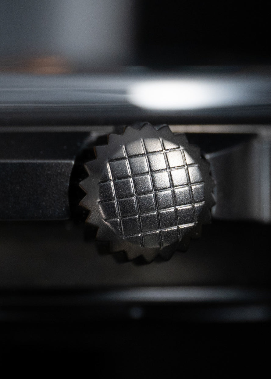 This watch features true "Super Compressor" crown construction that allows for the seals to further tighten as the watch experiences increased amounts of water pressure. The end result are crowns with considerable water resistance without the need to be screwed down.