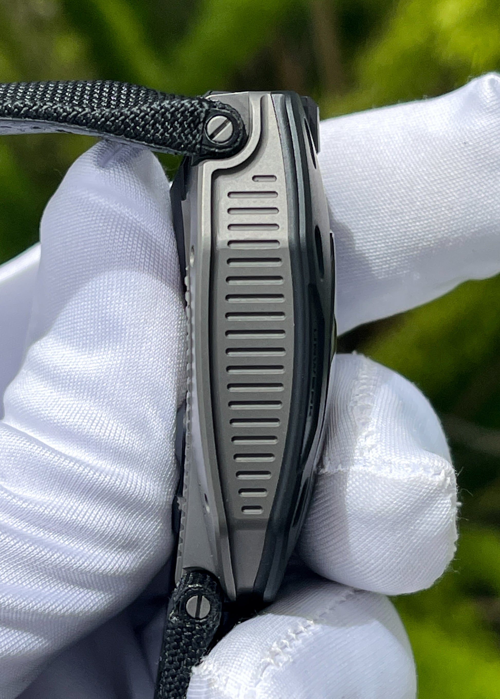 The DLC coated Stainless Steel and Titanium case measures 53mm long x 39.4mm wide x 16.8mm and is excellent condition. Furnished on a long length OEM strap and complete with Box and Papers dated April 2018. Serial #8/15.