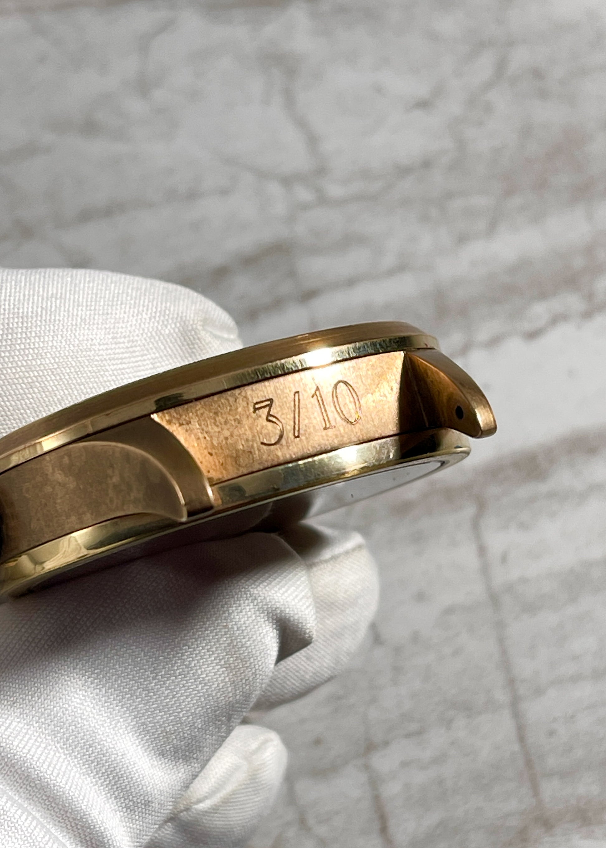 Bronze case meausres 42mm x 13.3 x 52mm lug-to-lug. This Special Edition is complete with Box and Papers, signed Bronze Dornbluth buckle as well as an additional steel caseback w/ crystal should you wish to not have bronze touching your skin.