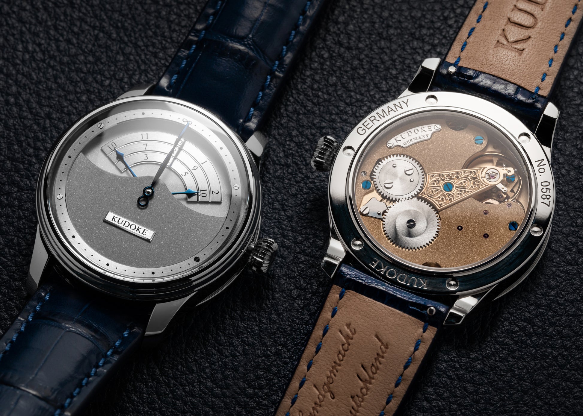 Stefan Kudoke's third addition to Kudoke's "Handwerk" (handcraft) collection is the aptly named Kudoke 3, which displays time in a playful and unconventional way. While the minutes are “classically” indicated by the large blued steel hand on the dial chapter ring sitting at the top, the hour indication is placed on an attached plate divided into three sections on the lower dial which works in coordination with a triple spoked hour hand.