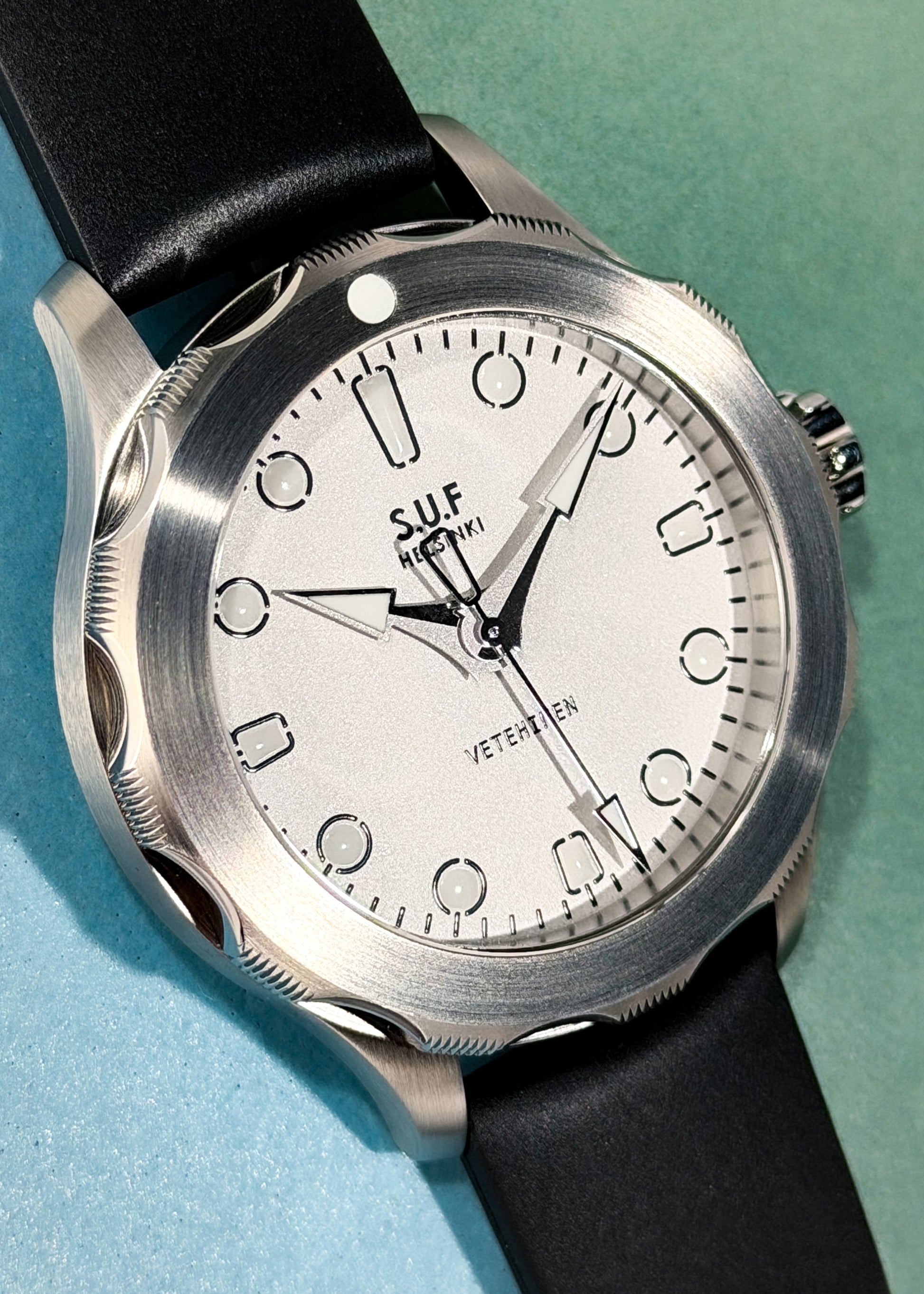S.U.F Helsinki's Vetehinen line of timepieces brings both Finland’s mythological water spirit and the legendary WWII submarine back to life. This newly released Mark 2 version features a slimmer case design and a solid steel caseback, giving it a tougher, more raw look - just the way Stepan likes it. It still carries that unmistakable Sarpaneva DNA: bold hands, signature crown, and "gear-like" rotating bezel.