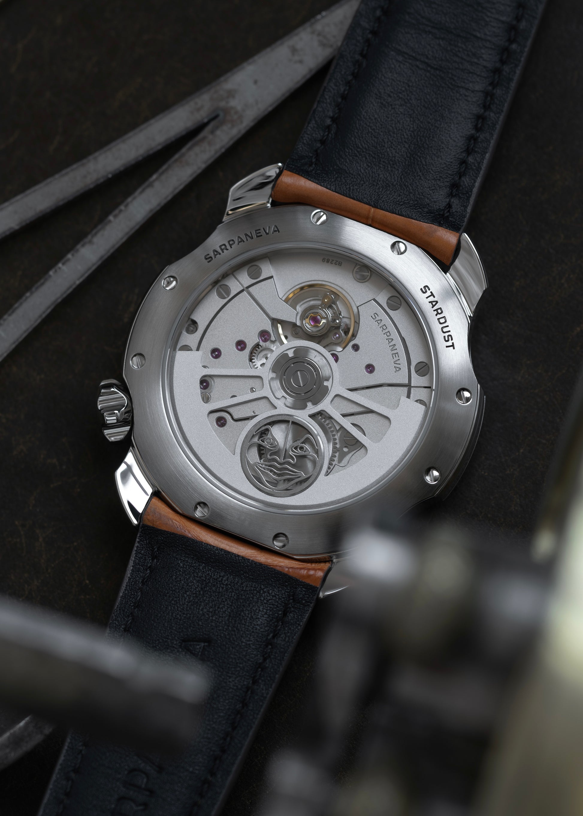 Forged from stainless steel and housed in Sarpaneva’s unmistakable Korona case, the Stardust “Mars” edition features an open-worked dial that reveals depth and shadow, framed by futuristic, stenciled numerals that feel lifted from instruments built for interplanetary travel. Mars moves in contrast. Its red-gold plated, matte base dial radiates restrained heat - not flame, but smouldering warmth. The tone recalls oxidised metal and celestial dust, glowing softly beneath a veil of frost, as if warmth is present but fading, held in suspension.