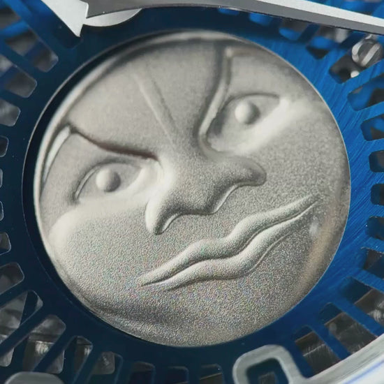 Stepan's inspiration for the Supermoon blends urban and natural elements, drawing from the intricate ironwork of Helsinki's pavements. His vision for the Moon on his Korona watches was deeply influenced by the mood and character he observed in Finland. He sought to create a Moon that embodied a specific emotional nuance, one that resonated with the Finnish spirit. According to Stepan, "everyone here in Finland floats around with an aura of slight melancholy," which made a traditionally smiling Moon seem out of place. Instead, he opted for a more complex expression—one that combined aristocratic melancholy with a subtle, almost indecisive emotion, leaving the Moon's nature somewhere between happiness and sadness. This enigmatic face, which has become Stepan's trademark, reflects a deep connection to his cultural surroundings. The Moon on the Korona K3 is neither fully joyous nor sorrowful; it simply "is," much like the people of Finland.