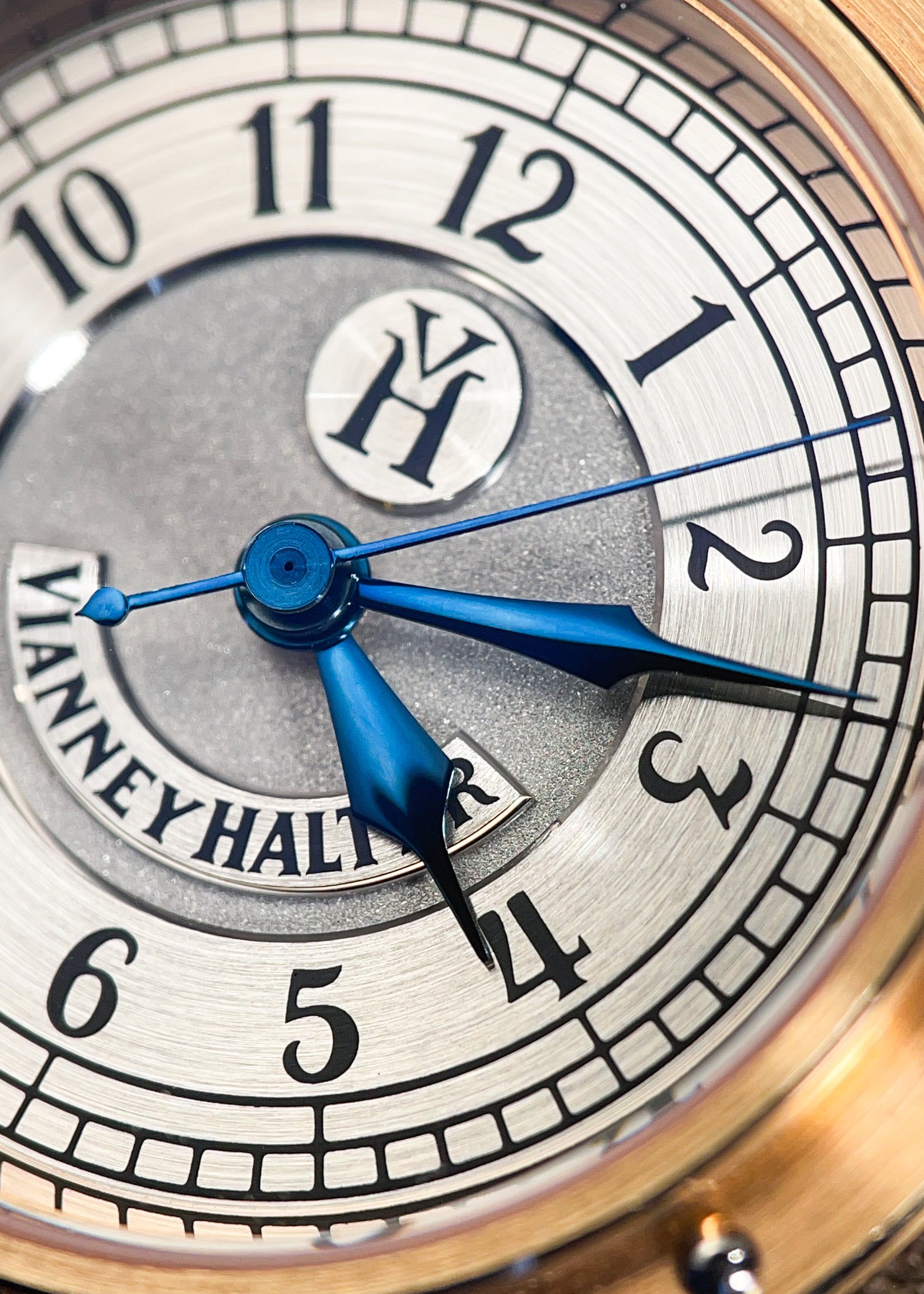 The multi-layered dial is a work of art, blending frosted and polished surfaces with hand-engraved elements. The silver dial, with carved numerals and a textured center, offers a three-dimensional allure, while flame-blued hands curve gracefully to minimize parallax. Every detail, from the anglaged edges to the hand-finished hands, reflects Halter’s obsessive attention to craft.